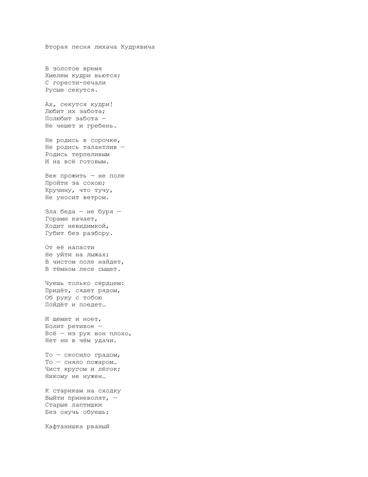 Вторая песня лихача Кудрявича