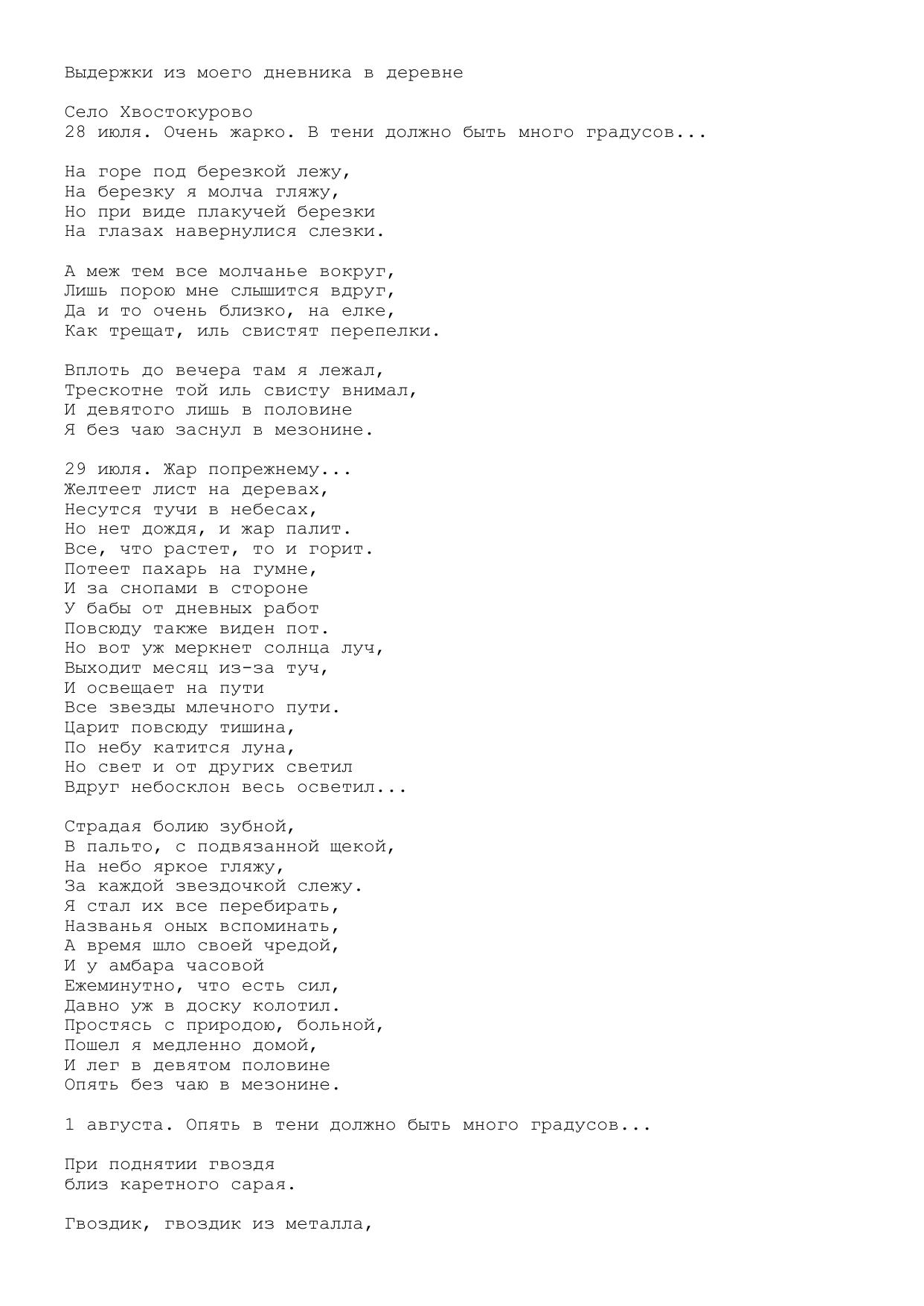 Выдержки из моего дневника в деревне