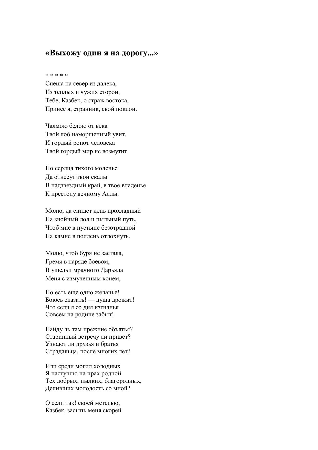 Выхожу один я на дорогу...