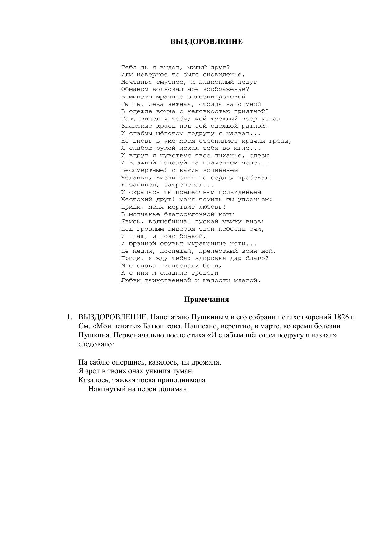 Выздоровление ("Тебя ль я видел, милый друг?...")