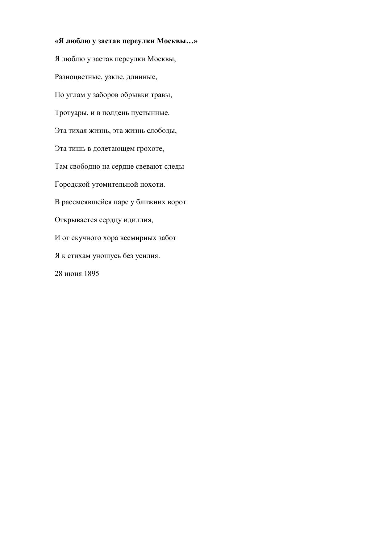 Я люблю у застав переулки Москвы…