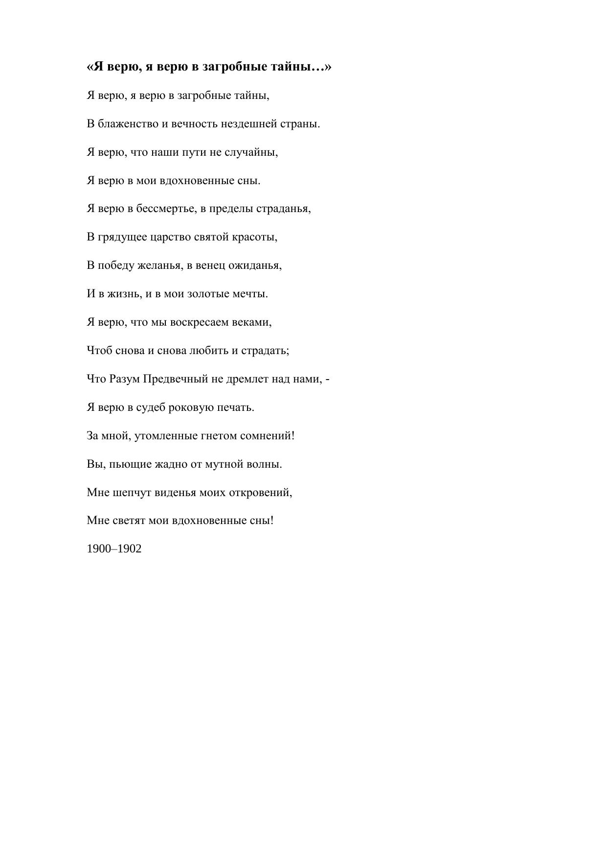 Я верю, я верю в загробные тайны…