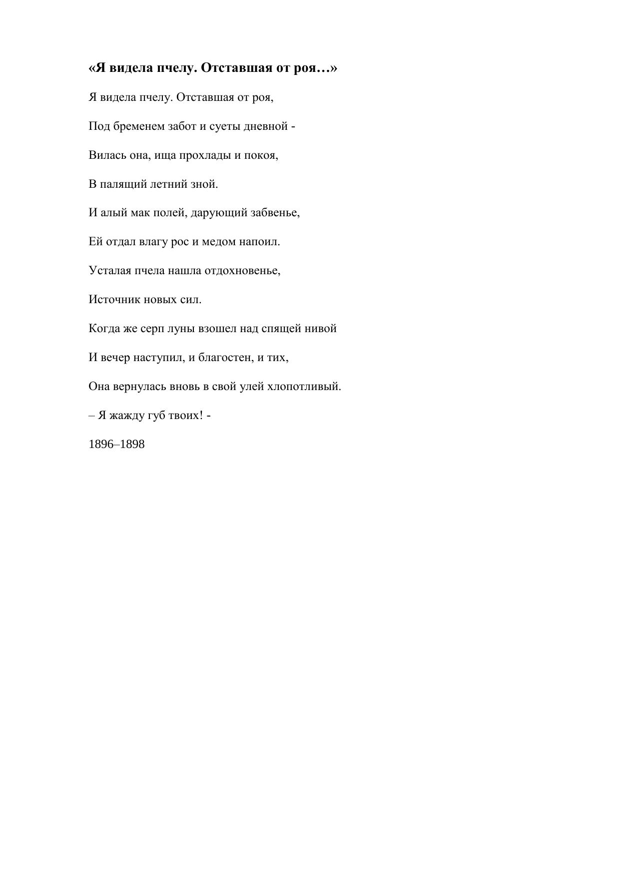 Я видела пчелу. отставшая от роя…