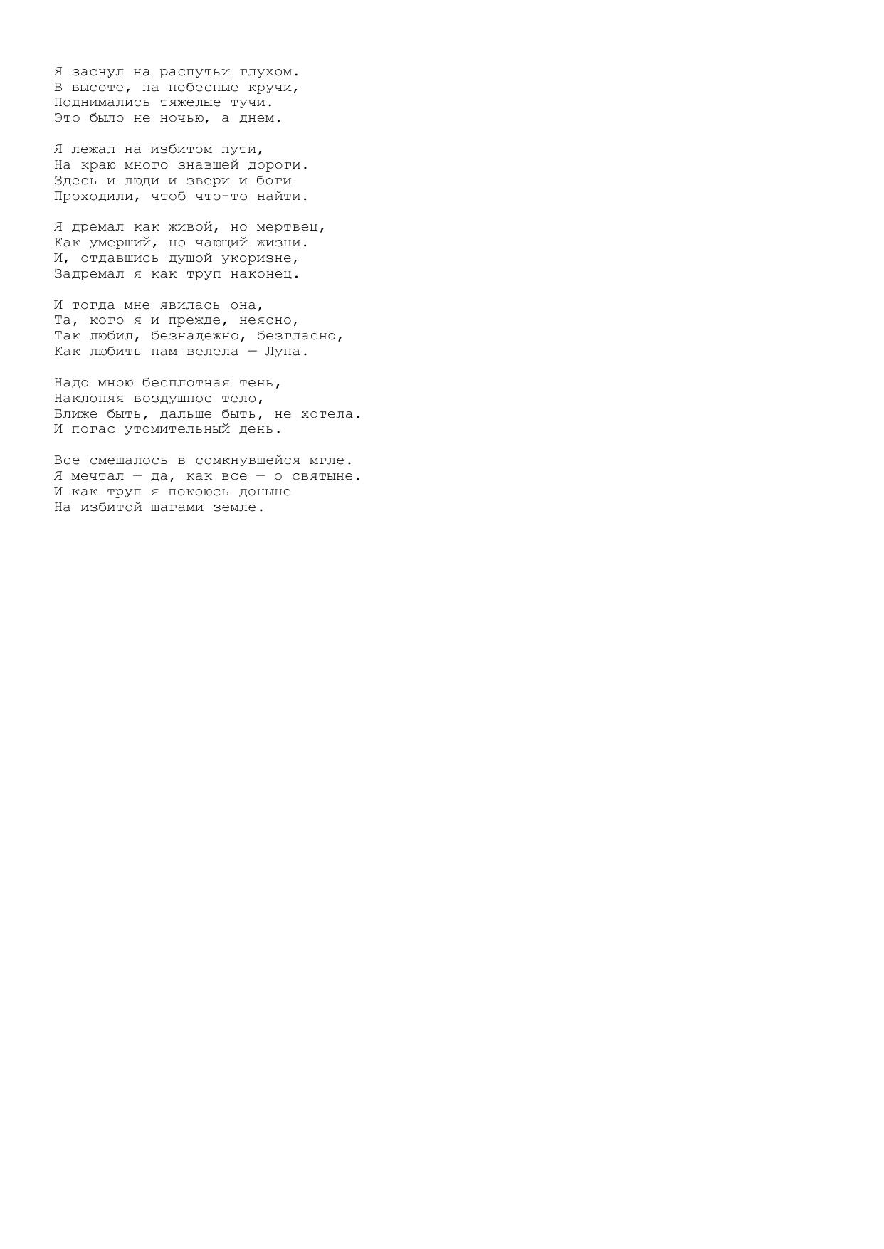 Я заснул на распутьи глухом...