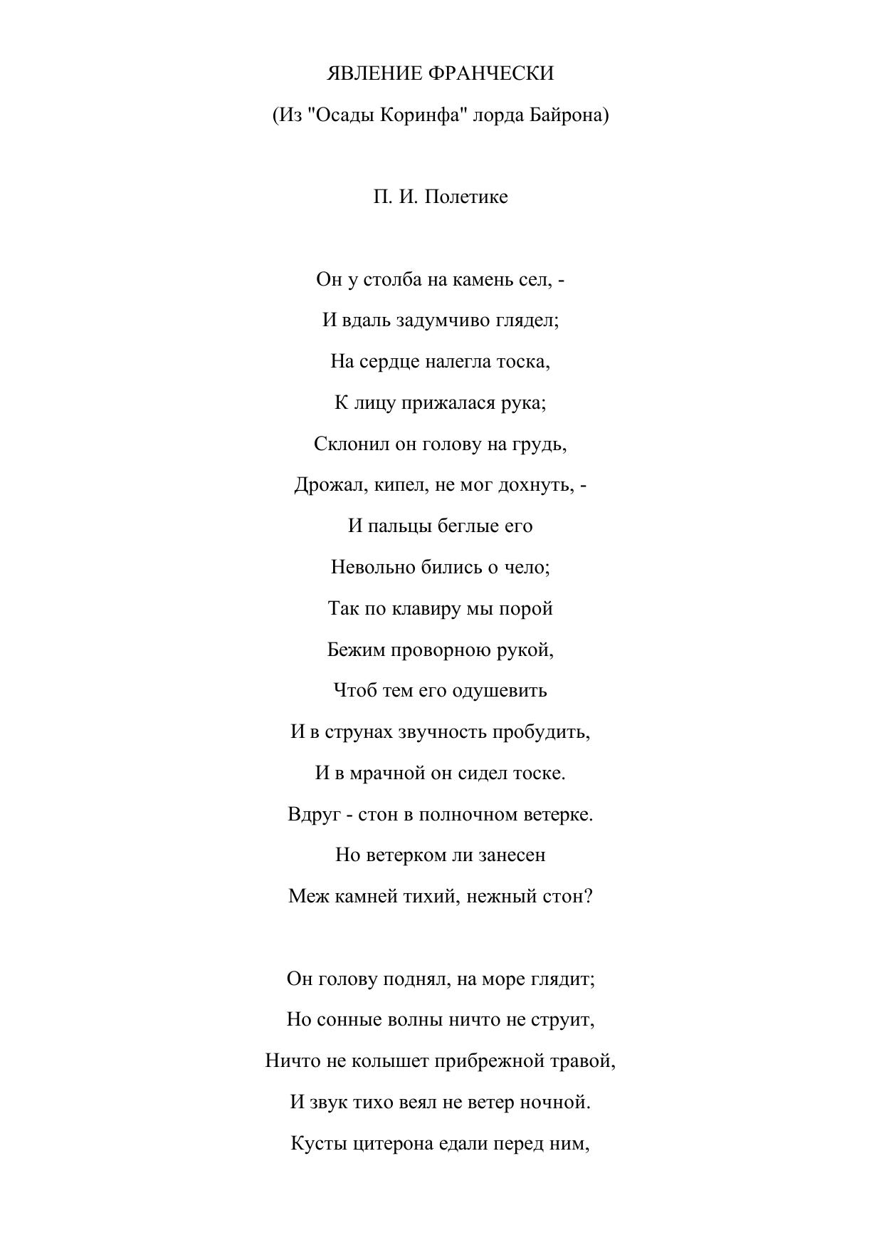 Явление Франчески (Из "Осады Коринфа" лорда Байрона)