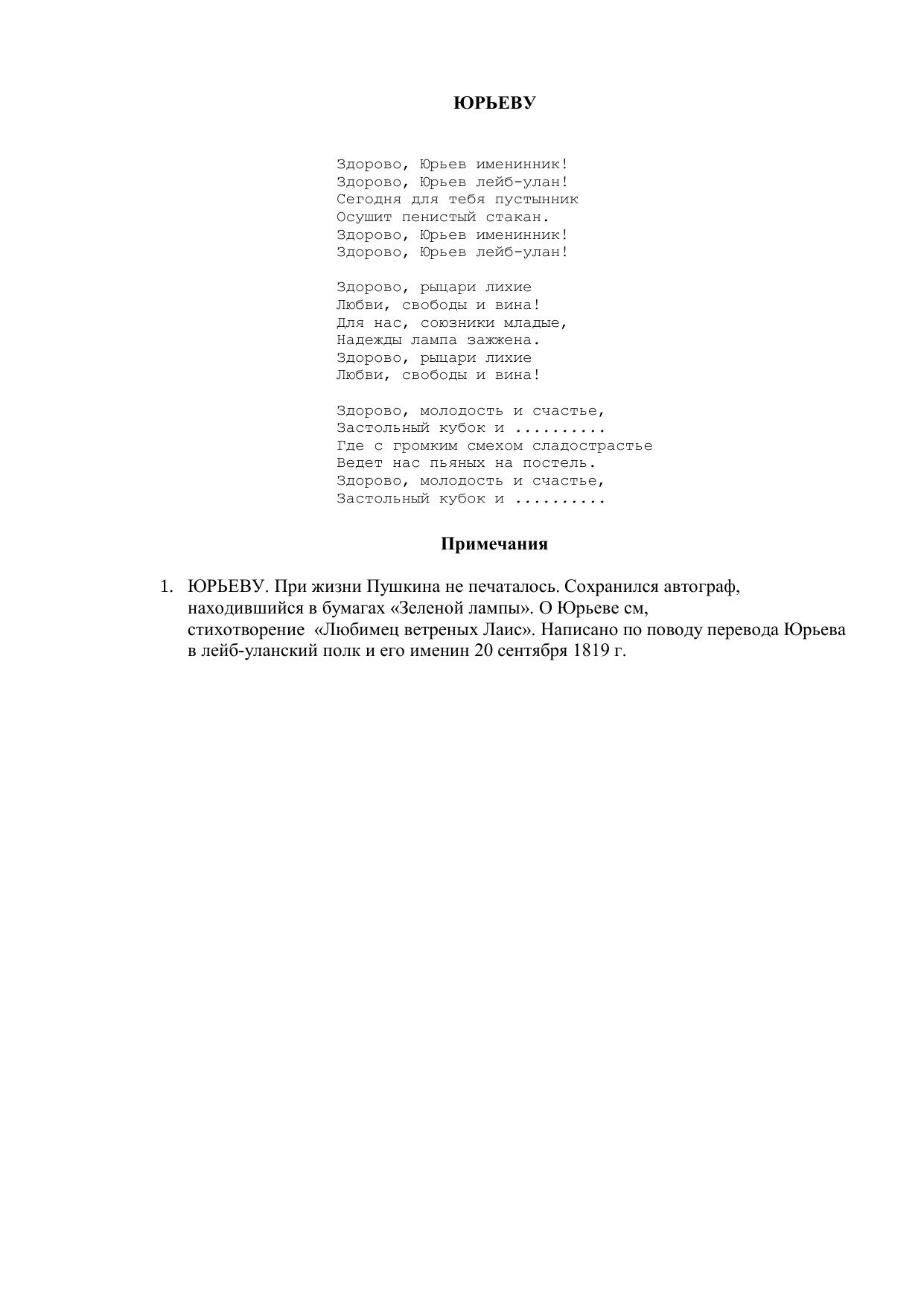 Юрьеву ("Здорово, Юрьев именинник!..")