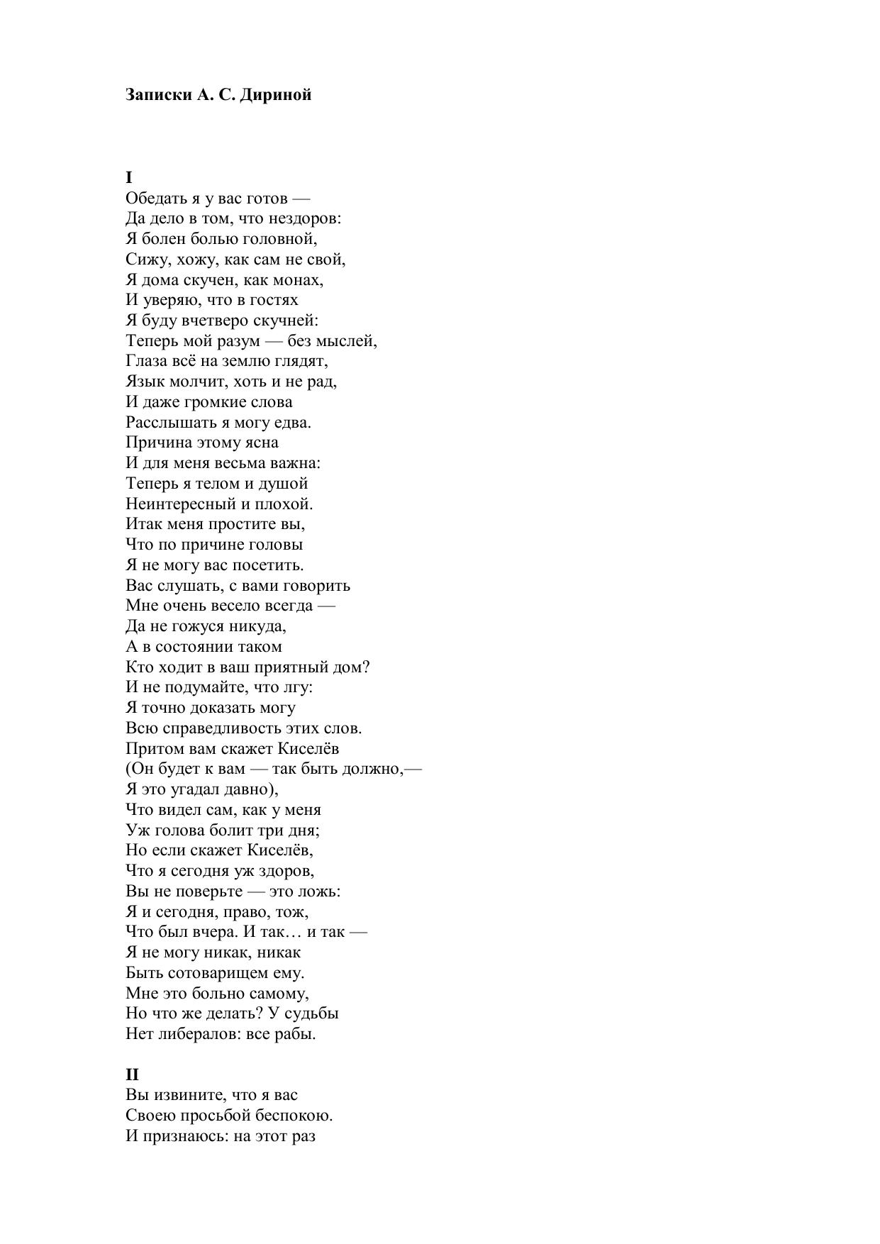 Записки А. С. Дириной (Обедать я у вас готов…)
