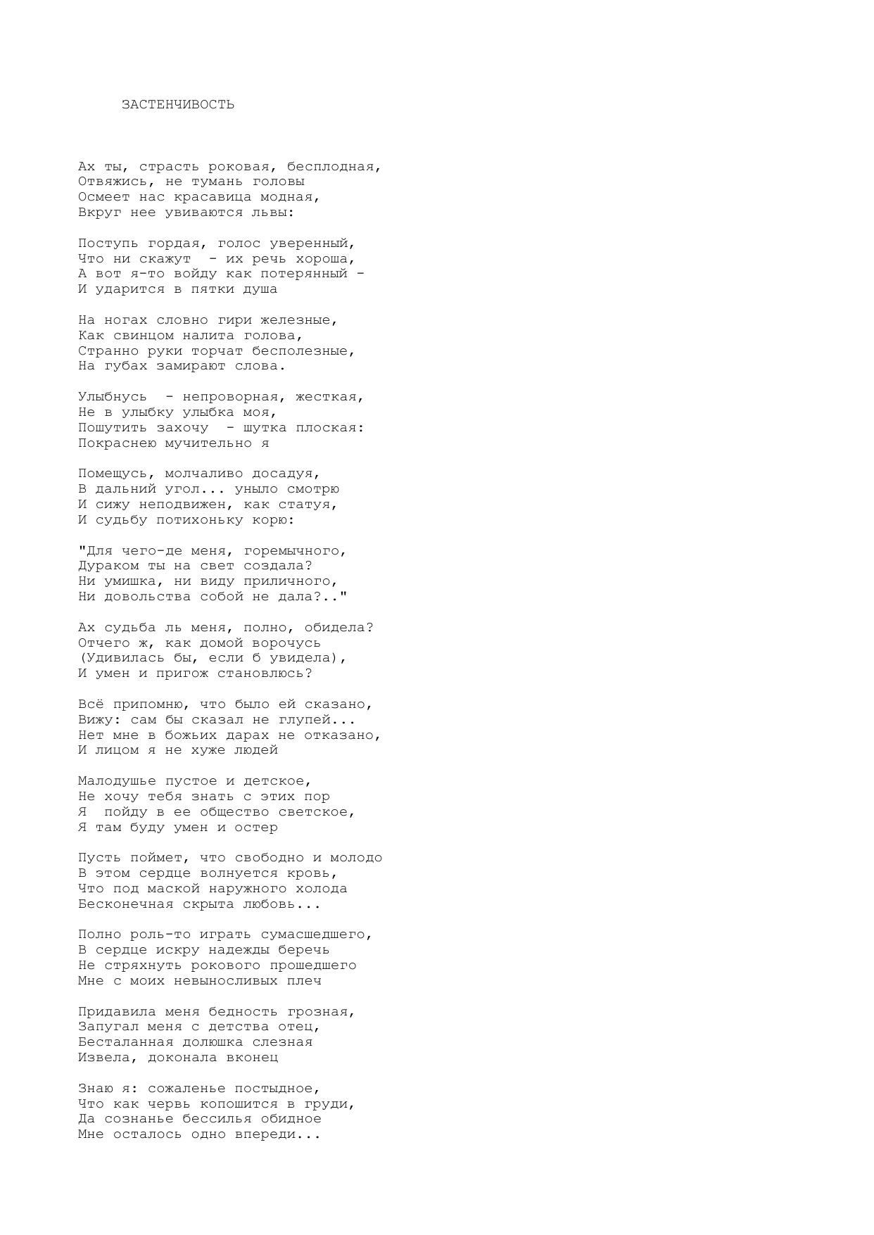 Застенчивость (Ах ты, страсть роковая, бесплодная...)