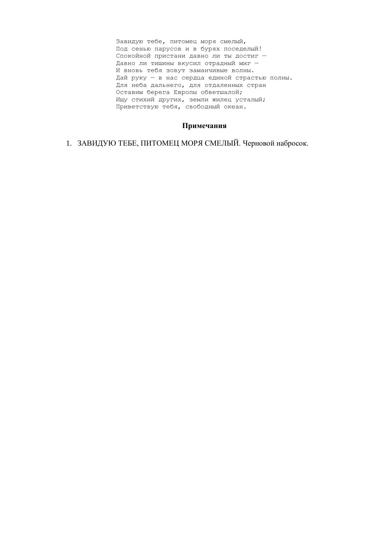 Завидую тебе питомец моря смелый