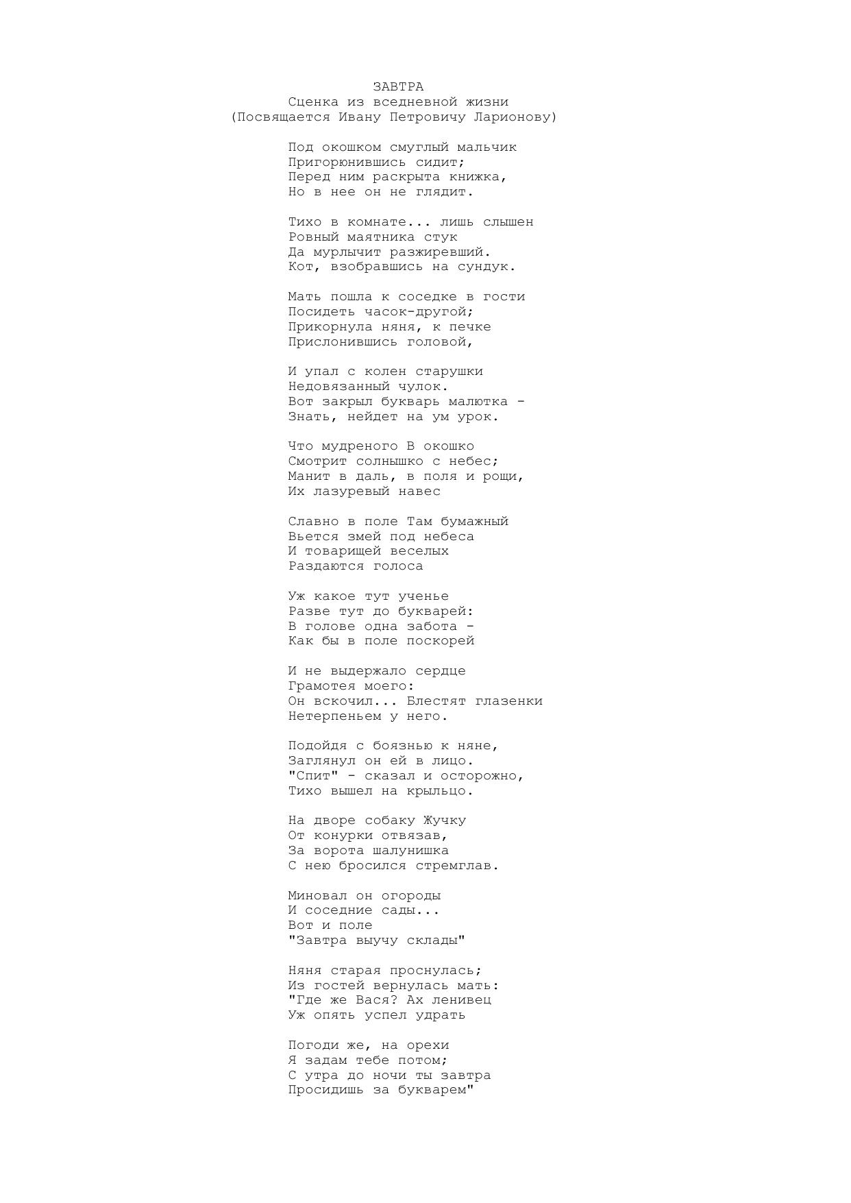Завтра (Сценка из вседневной жизни)