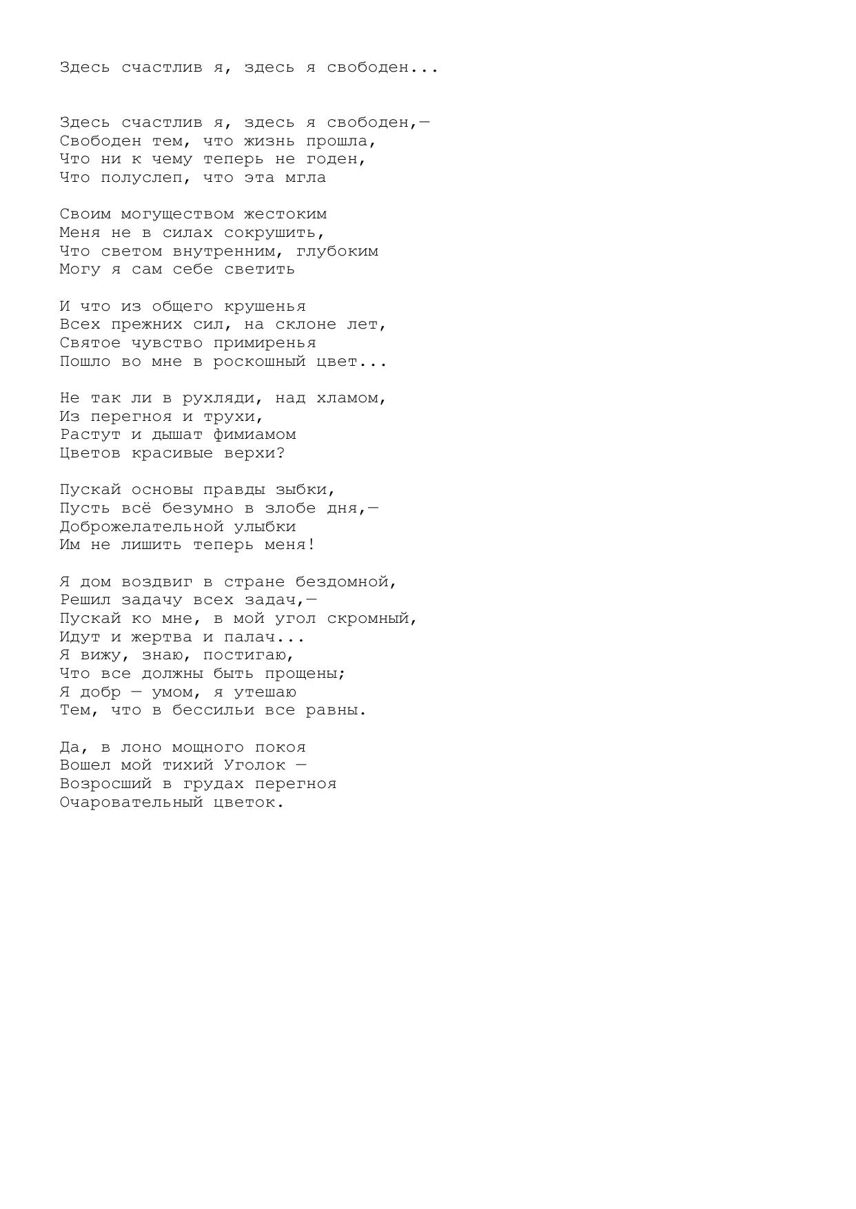 Здесь счастлив я, здесь я свободен…