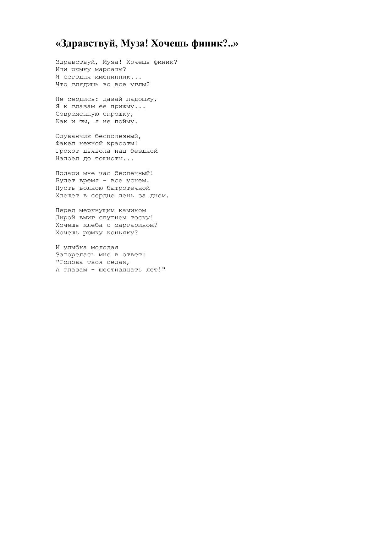 Здравствуй, Муза! Хочешь финик?..