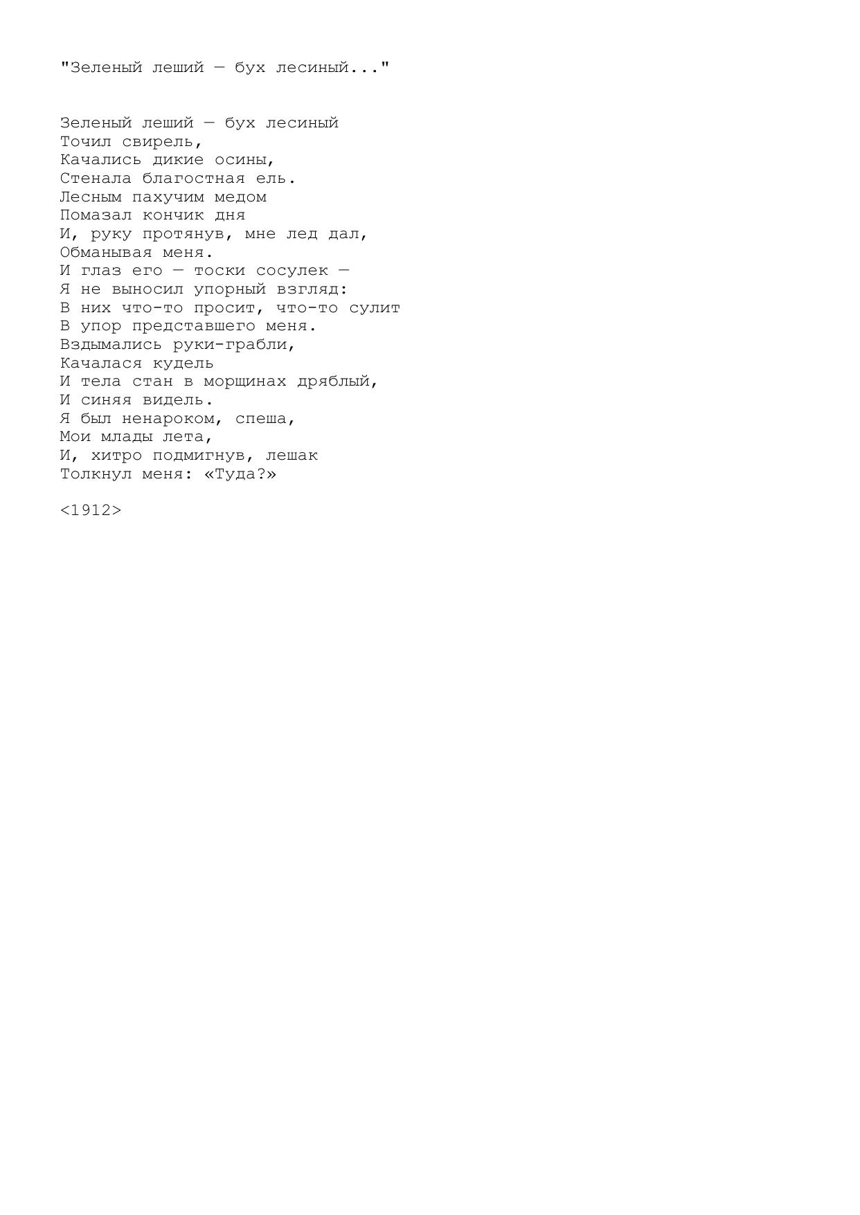 Зеленый леший — бух лесиный...