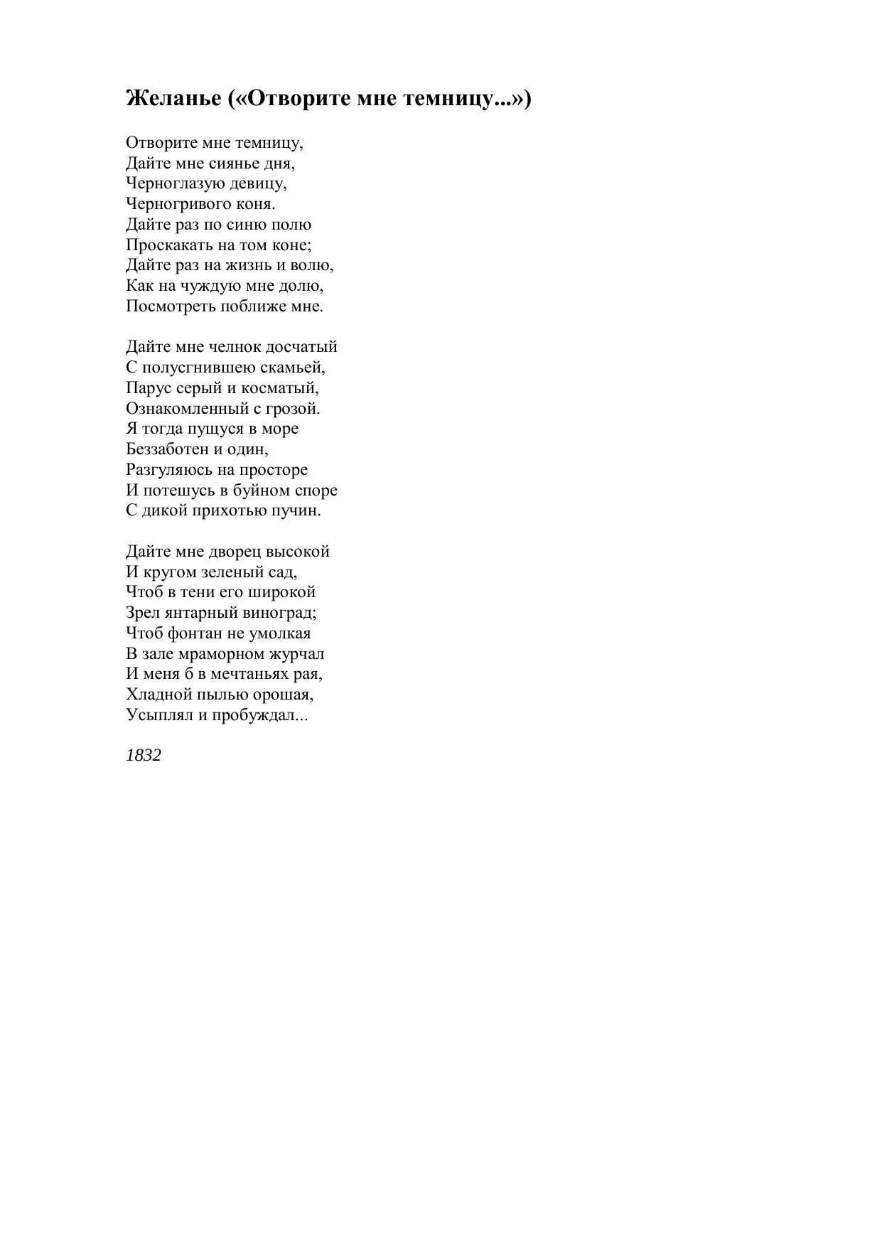 Желанье (Отворите мне темницу...)