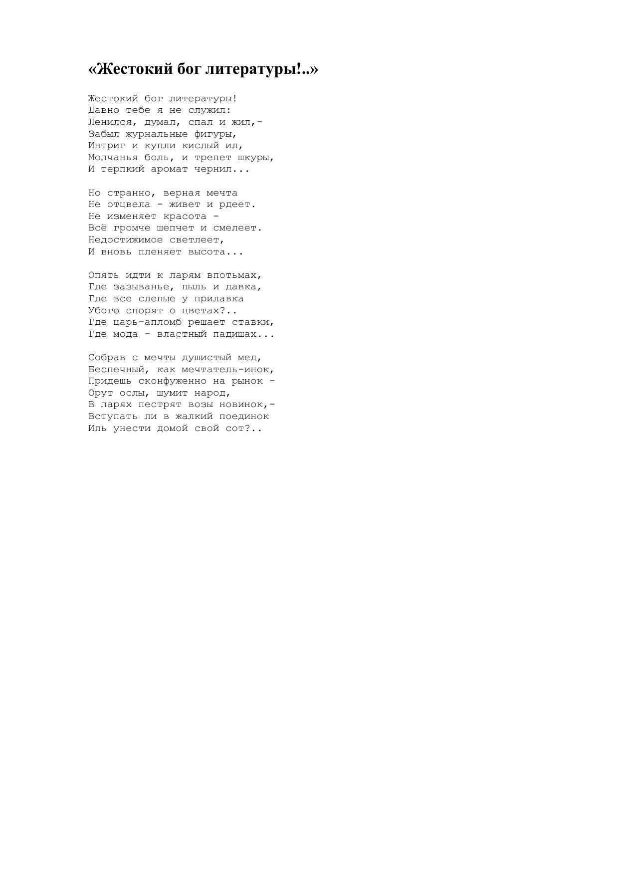 Жестокий бог литературы!..
