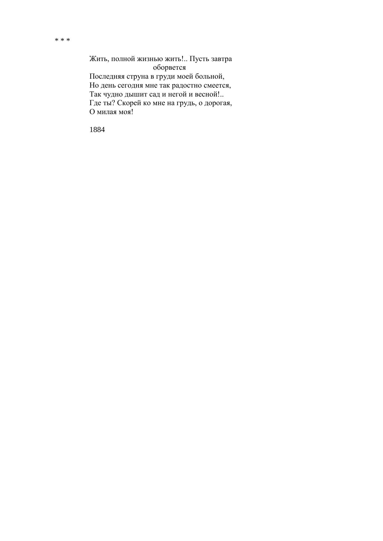 Жить, полной жизнью жить!.. Пусть завтра оборвется...