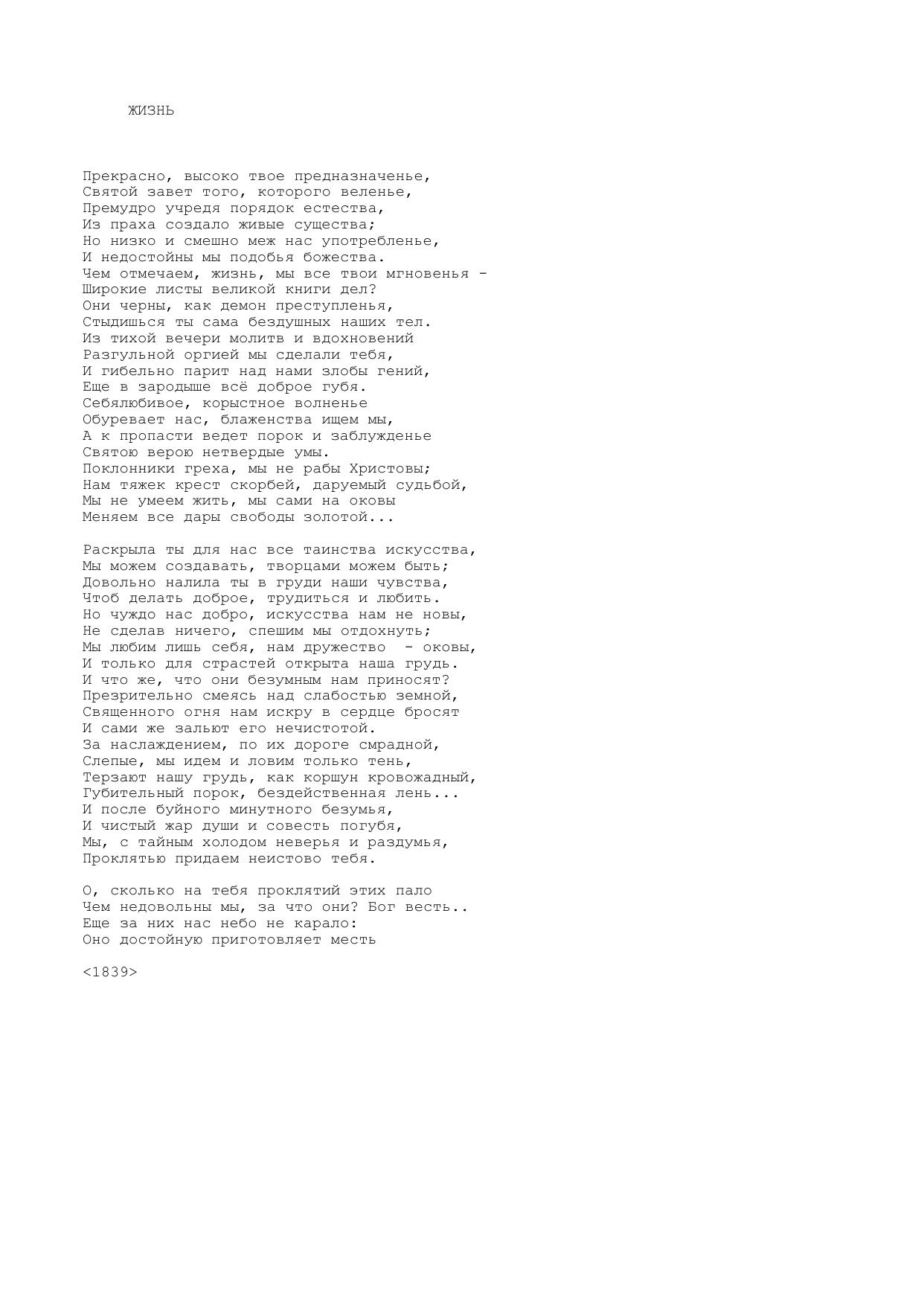 Жизнь (Прекрасно, высоко твое предназначенье...)