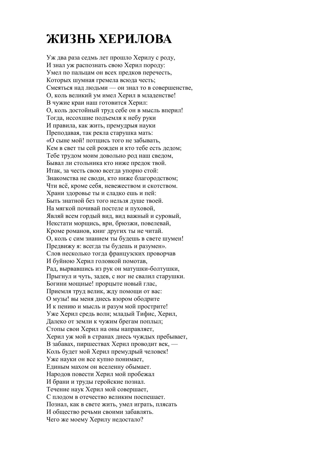 Жизнь Херилова