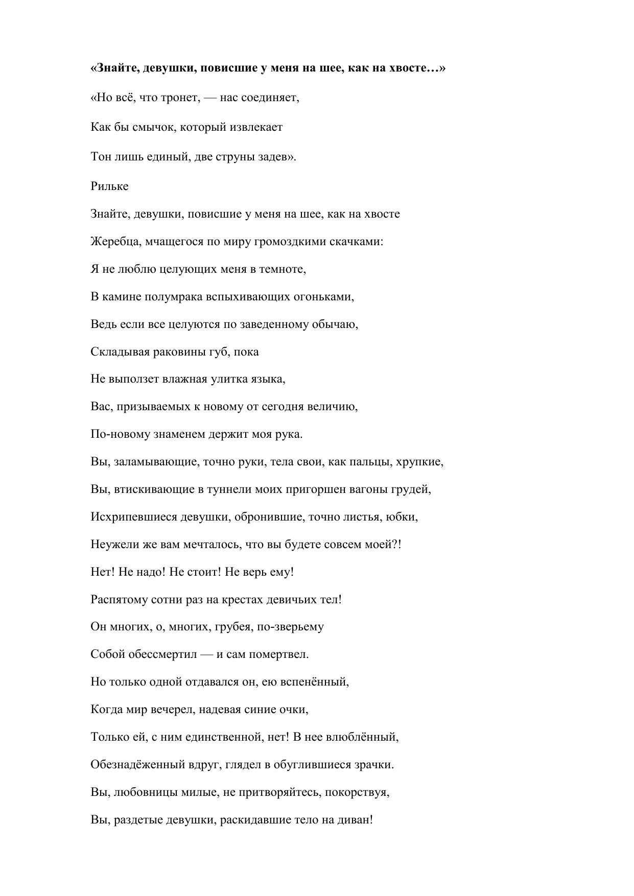 Знайте, девушки, повисшие у меня на шее, как на хвосте…