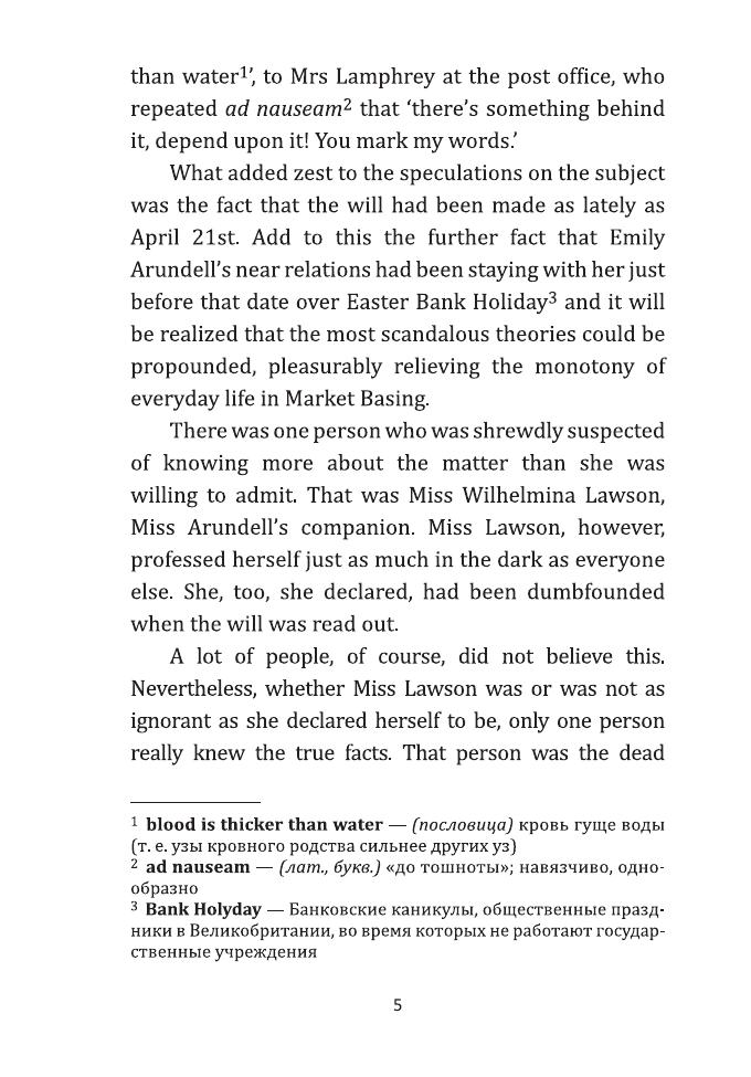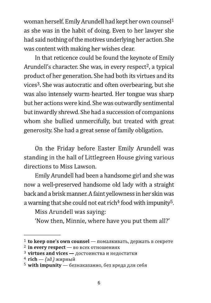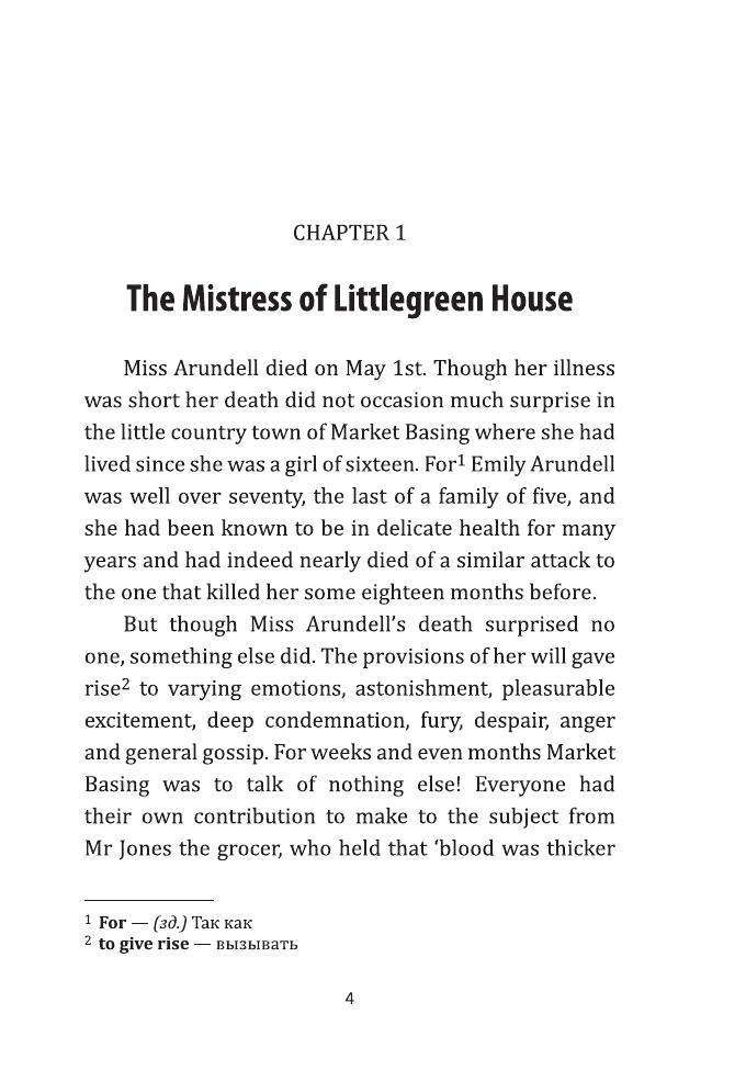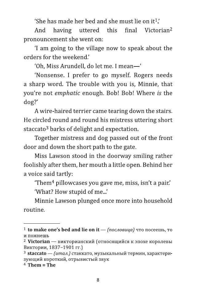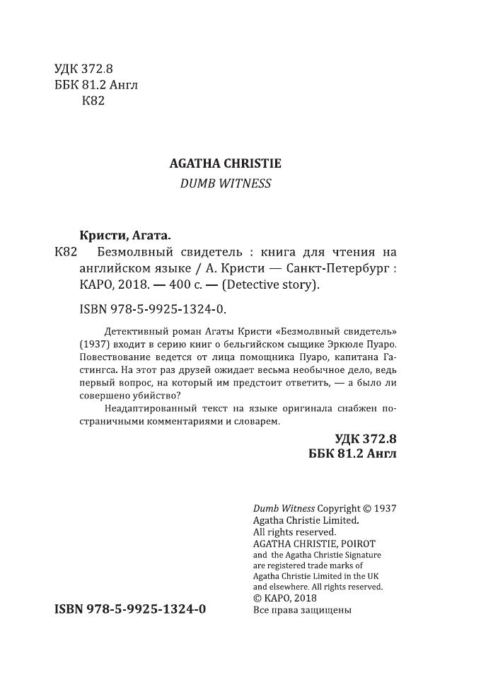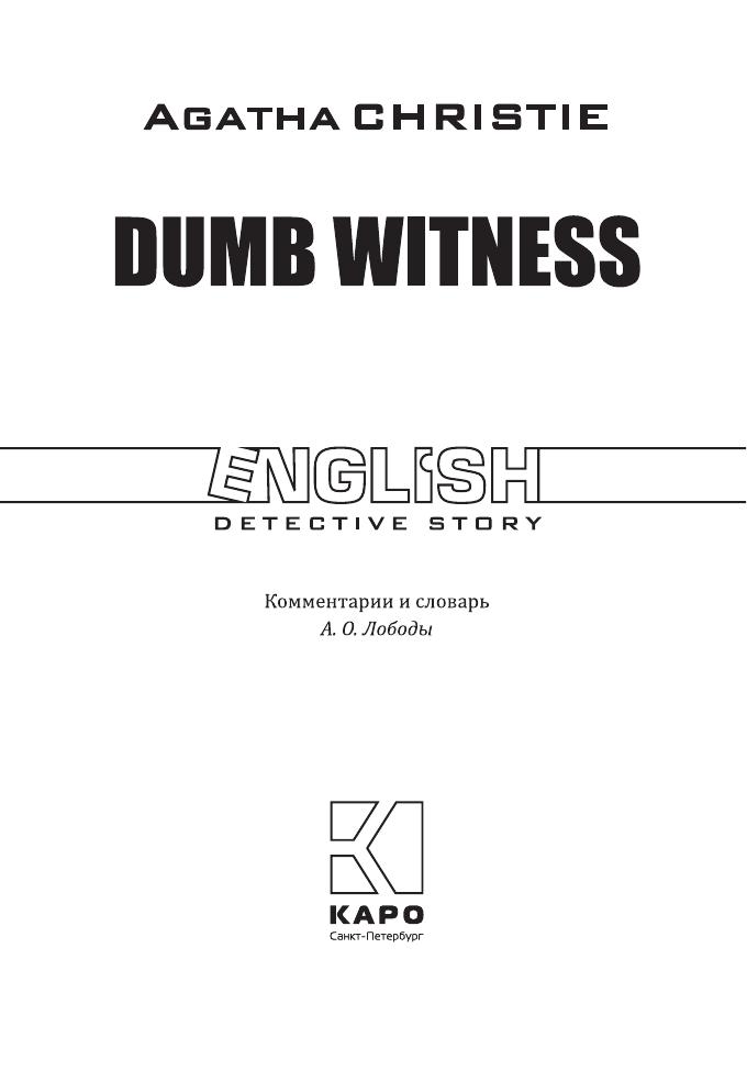 Детективный роман Агаты Кристи "Безмолвный свидетель" (1937) входит в серию книг о бельгийском сыщике Эркюле Пуаро. Повествование ведется от лица помощника Пуаро, капитана Гастингса. На этот раз друзей ожидает весьма необычное дело, ведь первый вопрос, на который им предстоит ответить, - а было ли совершено убийство? Неадаптированный текст на языке оригинала снабжен постраничными комментариями и словарем.