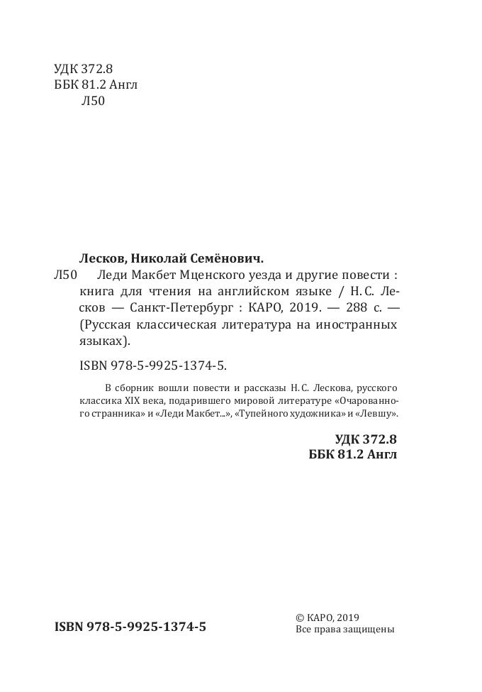 Леди Макбет Мценского уезда и другие повести. Книга для чтения на английском языке