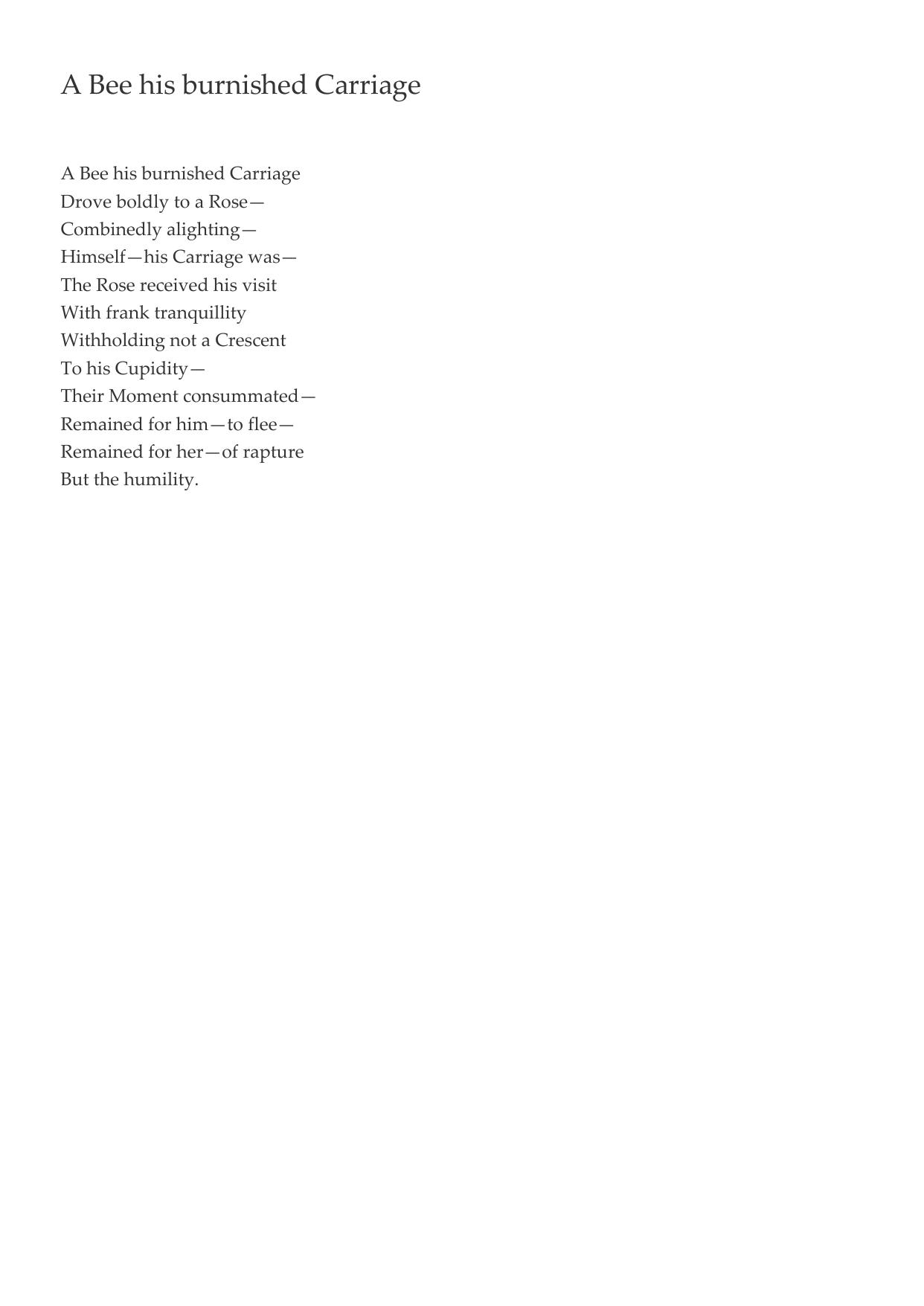 A Bee his burnished Carriage