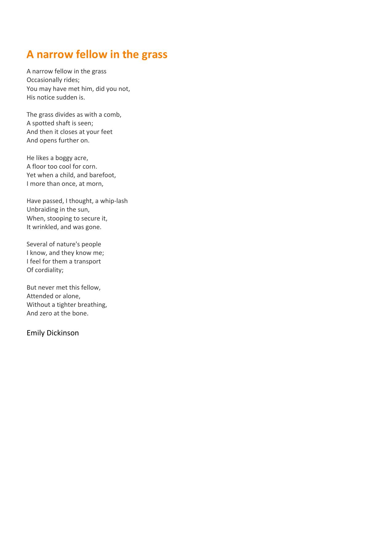 A narrow Fellow in the Grass