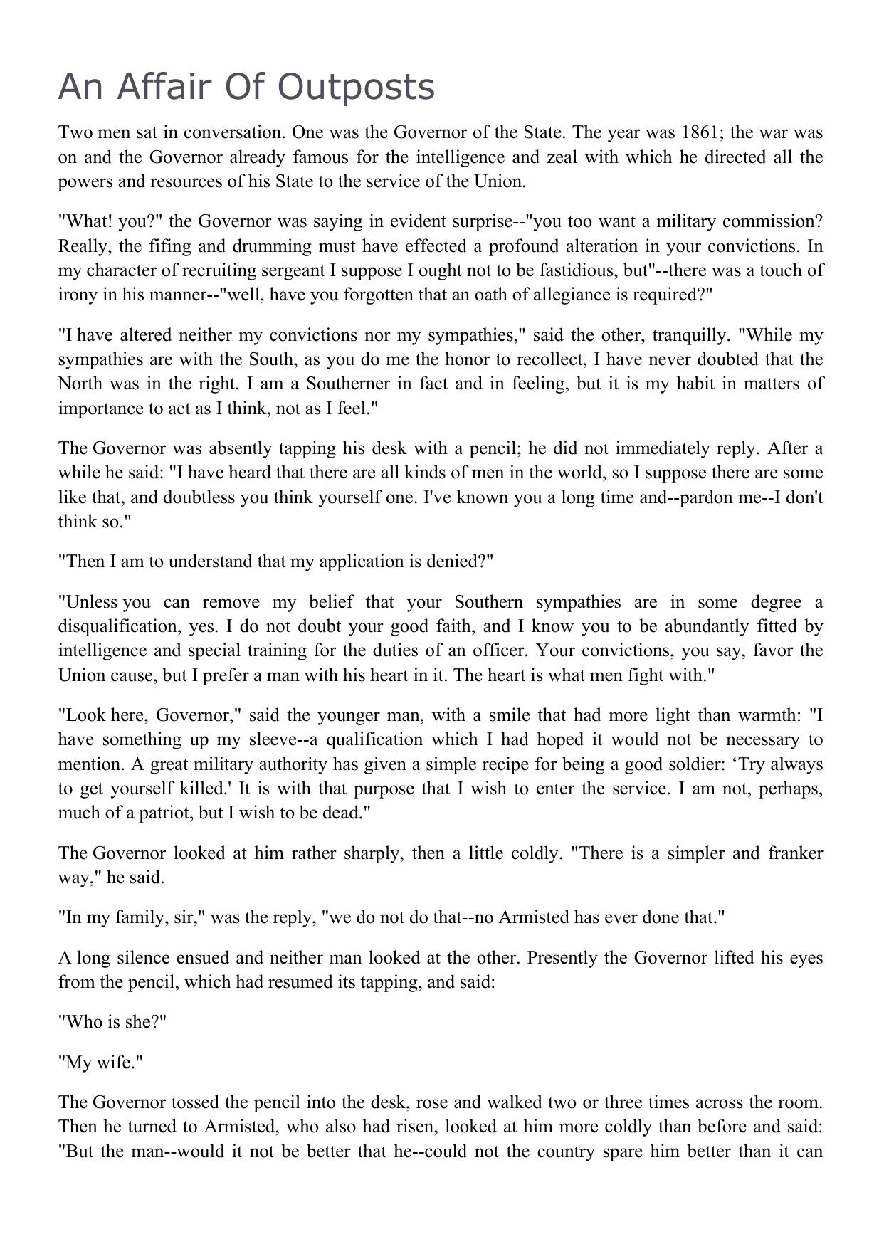 An Affair of Outposts