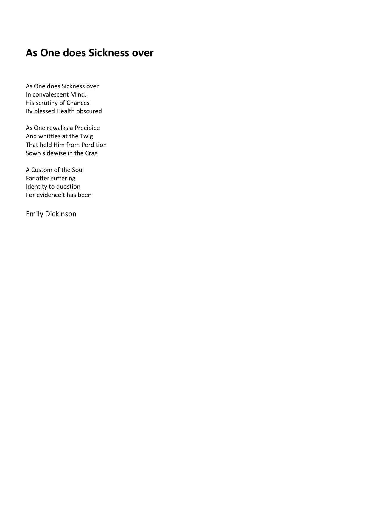 As One does Sickness over
