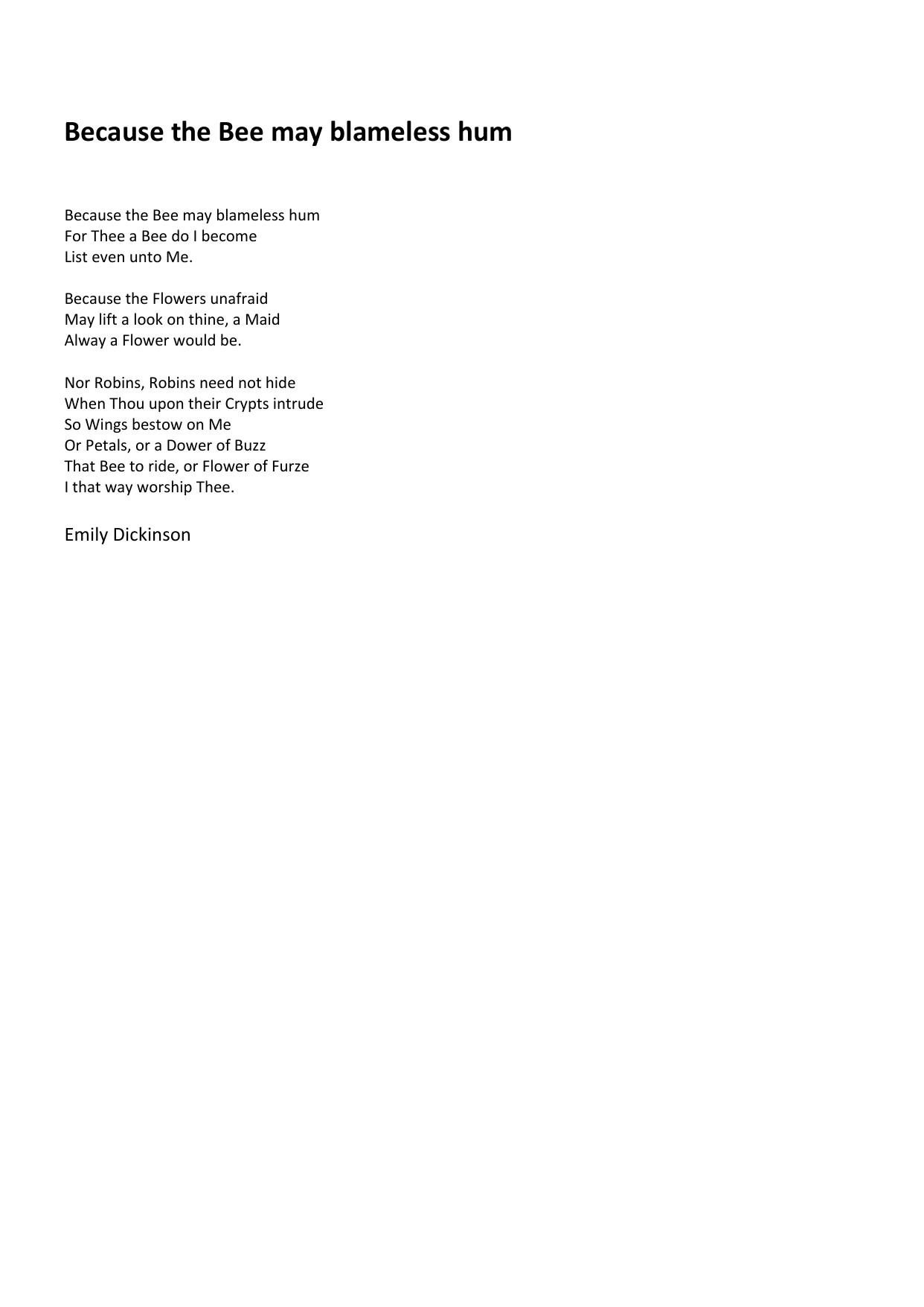 Because the Bee may blameless hum