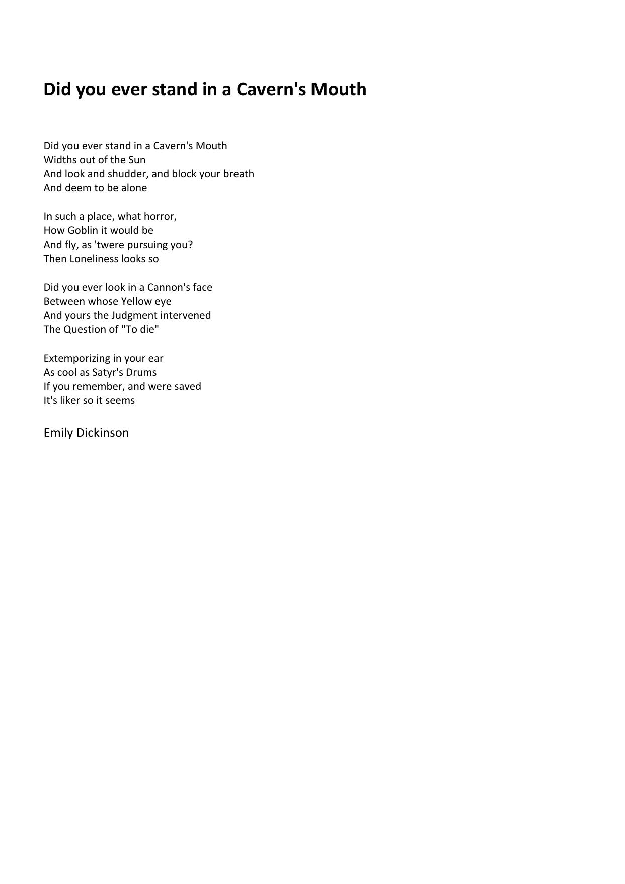 Did you ever stand in a Cavern's Mouth