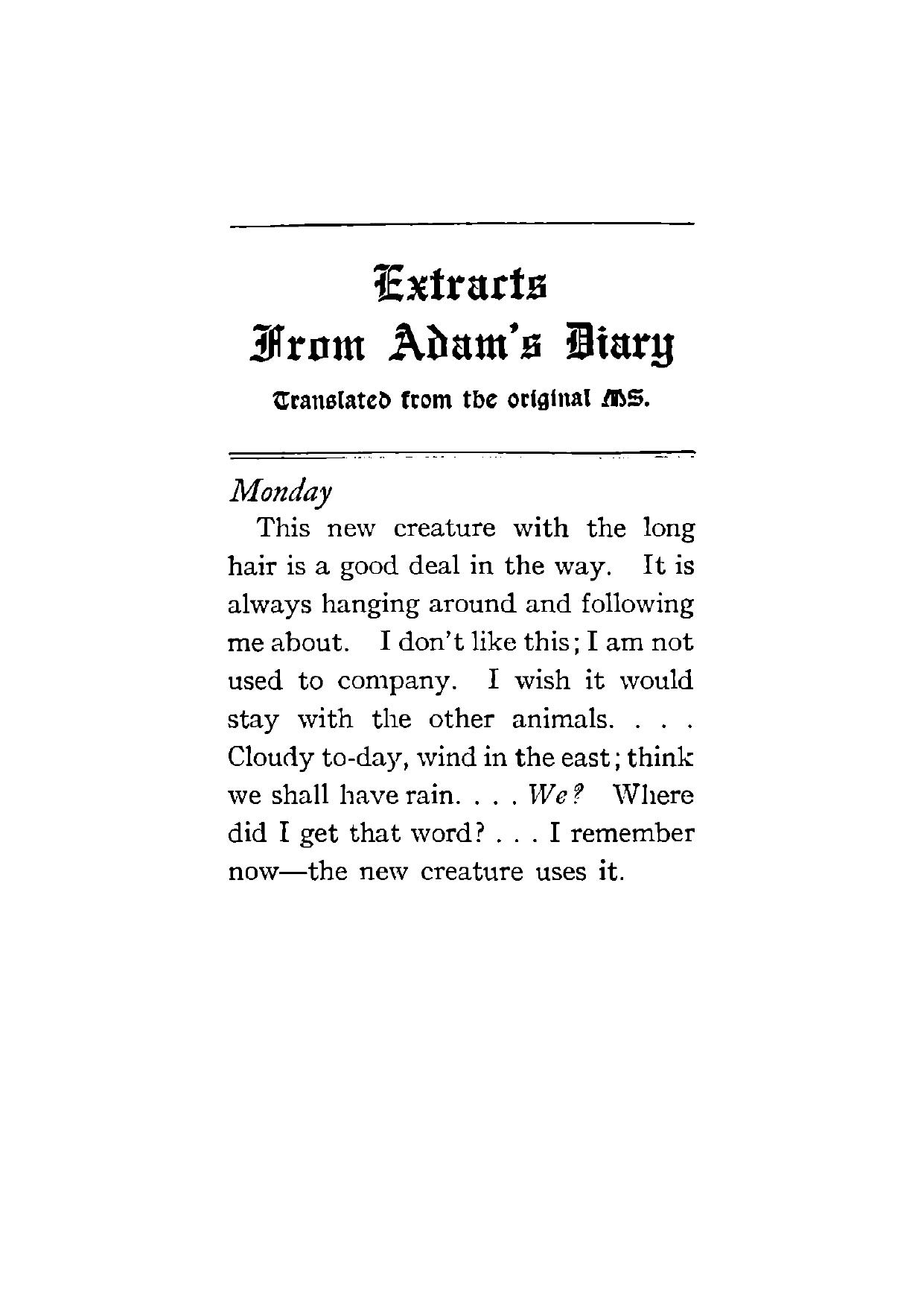 Extracts from Adam's Diary