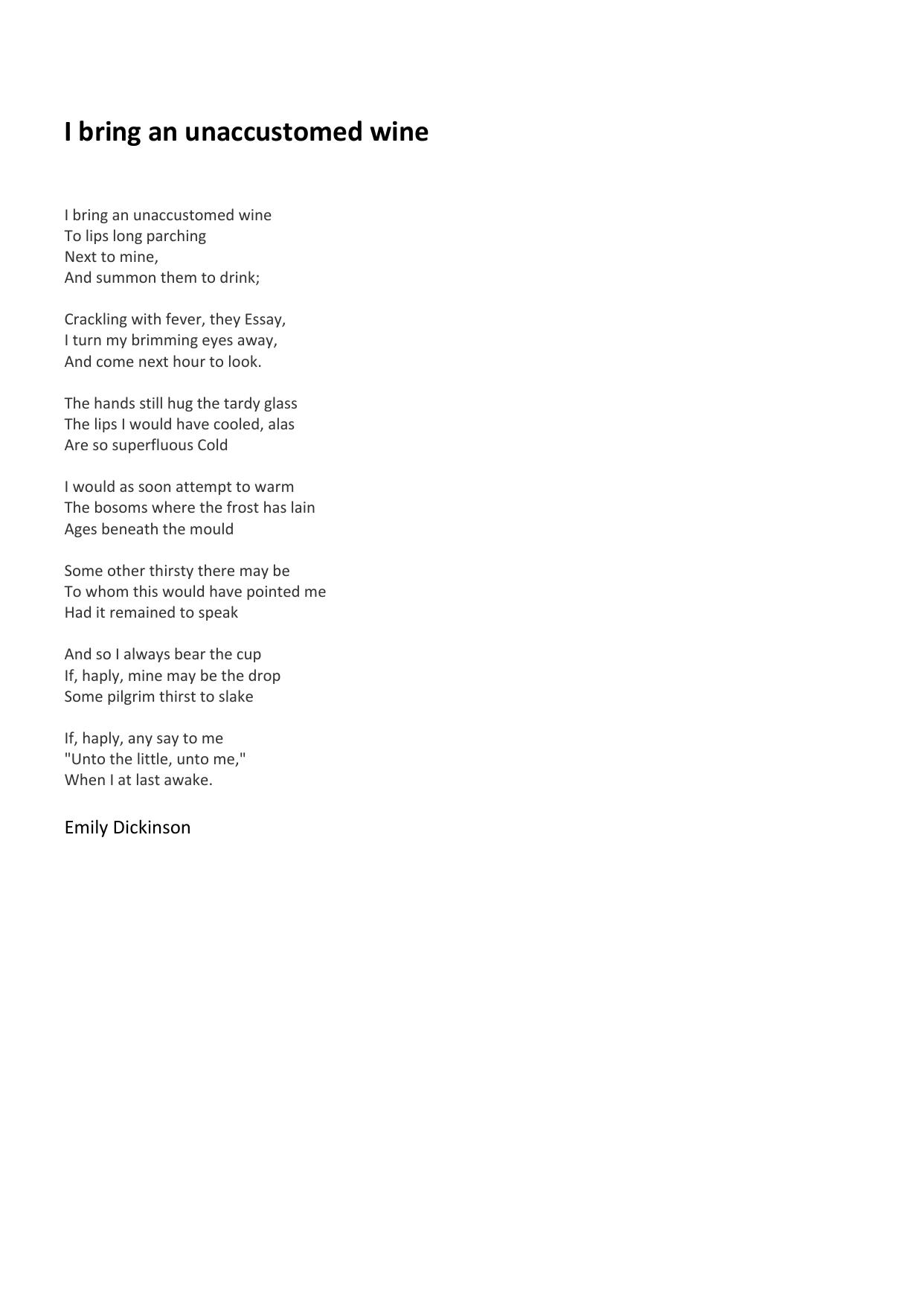 I bring an unaccustomed wine