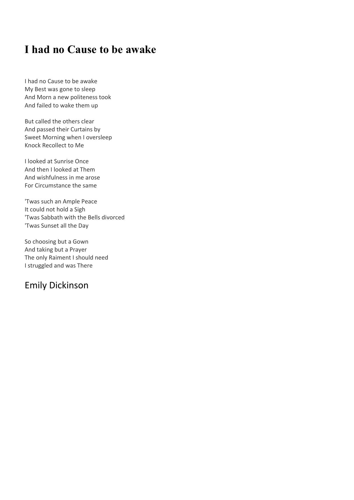 I had no Cause to be awake