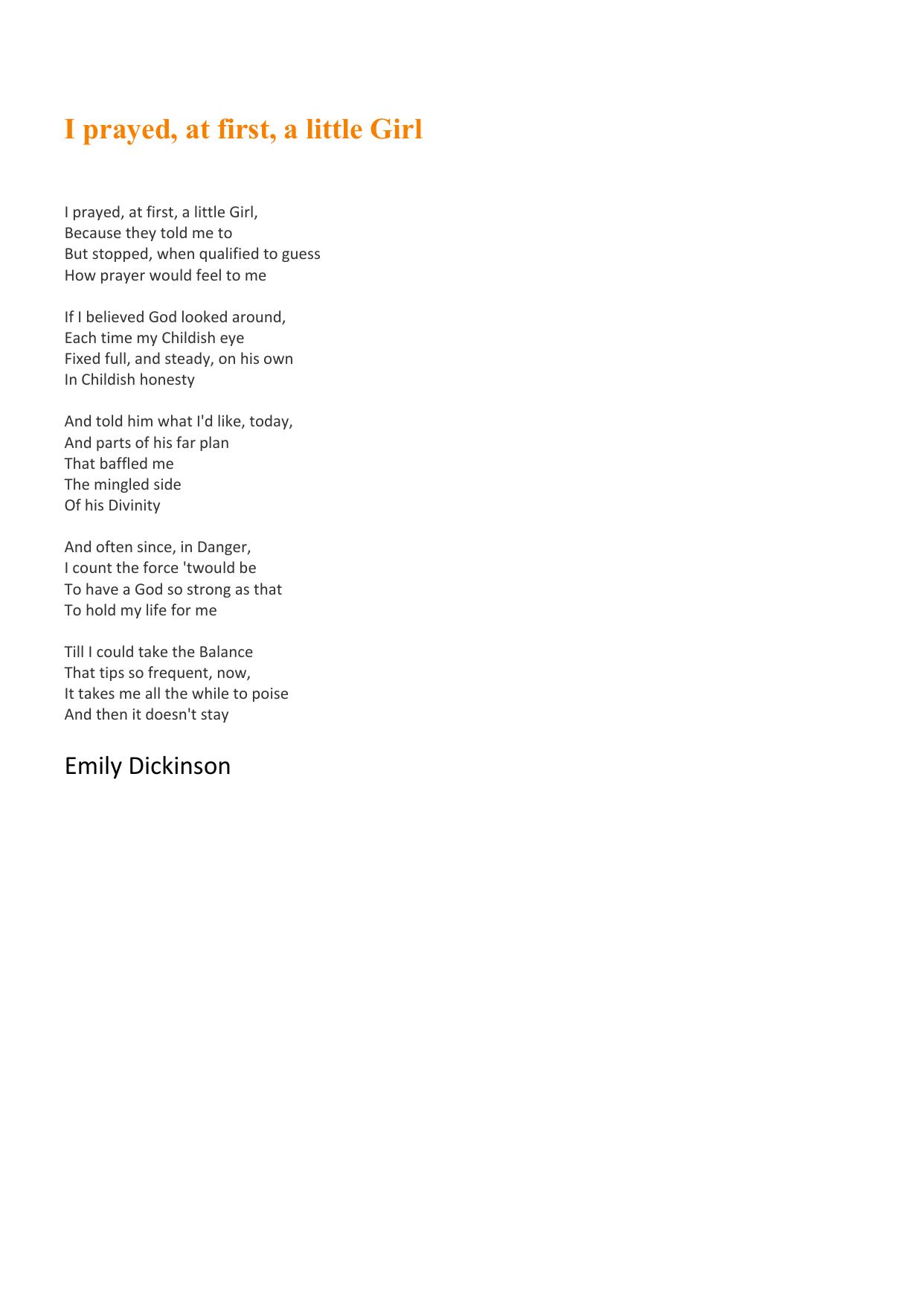 I prayed, at first, a little Girl