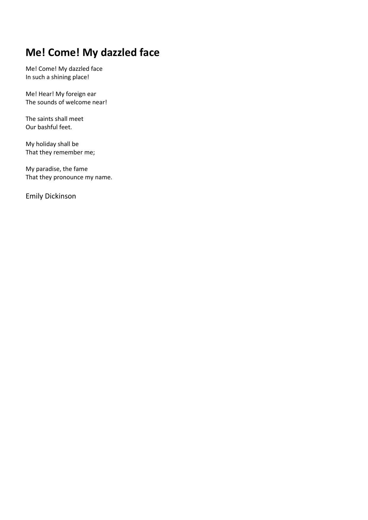 Me — come! My dazzled face