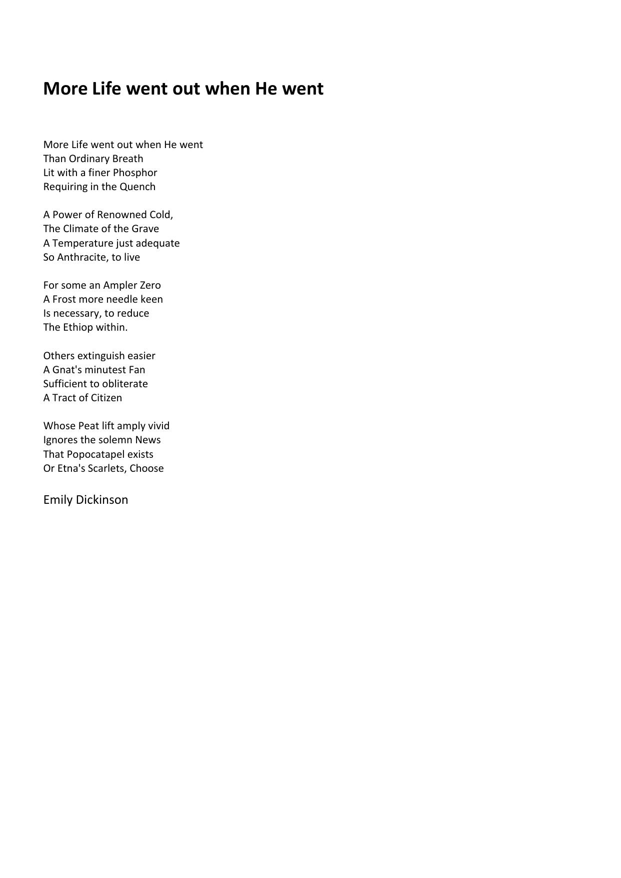 More Life — went out — when He went