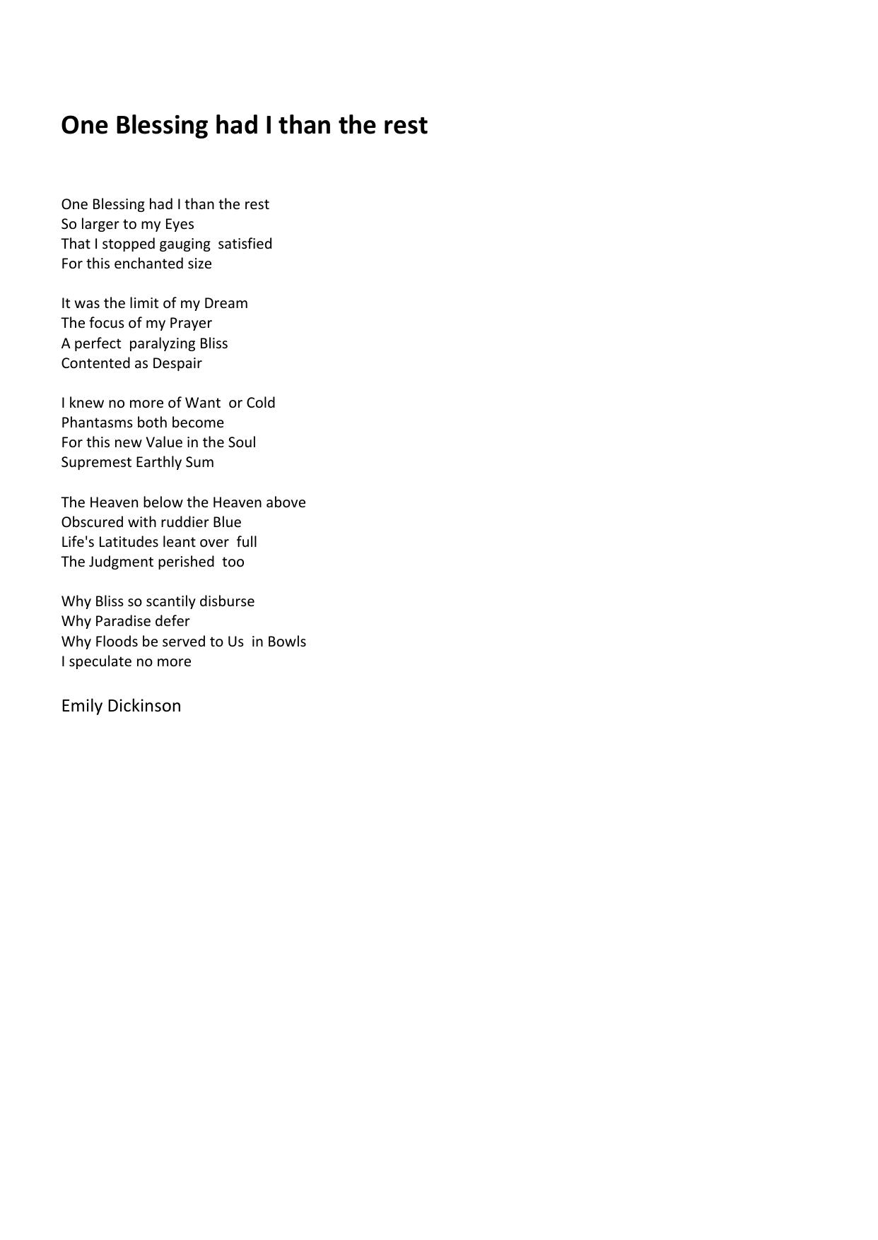 One Blessing had I than the rest