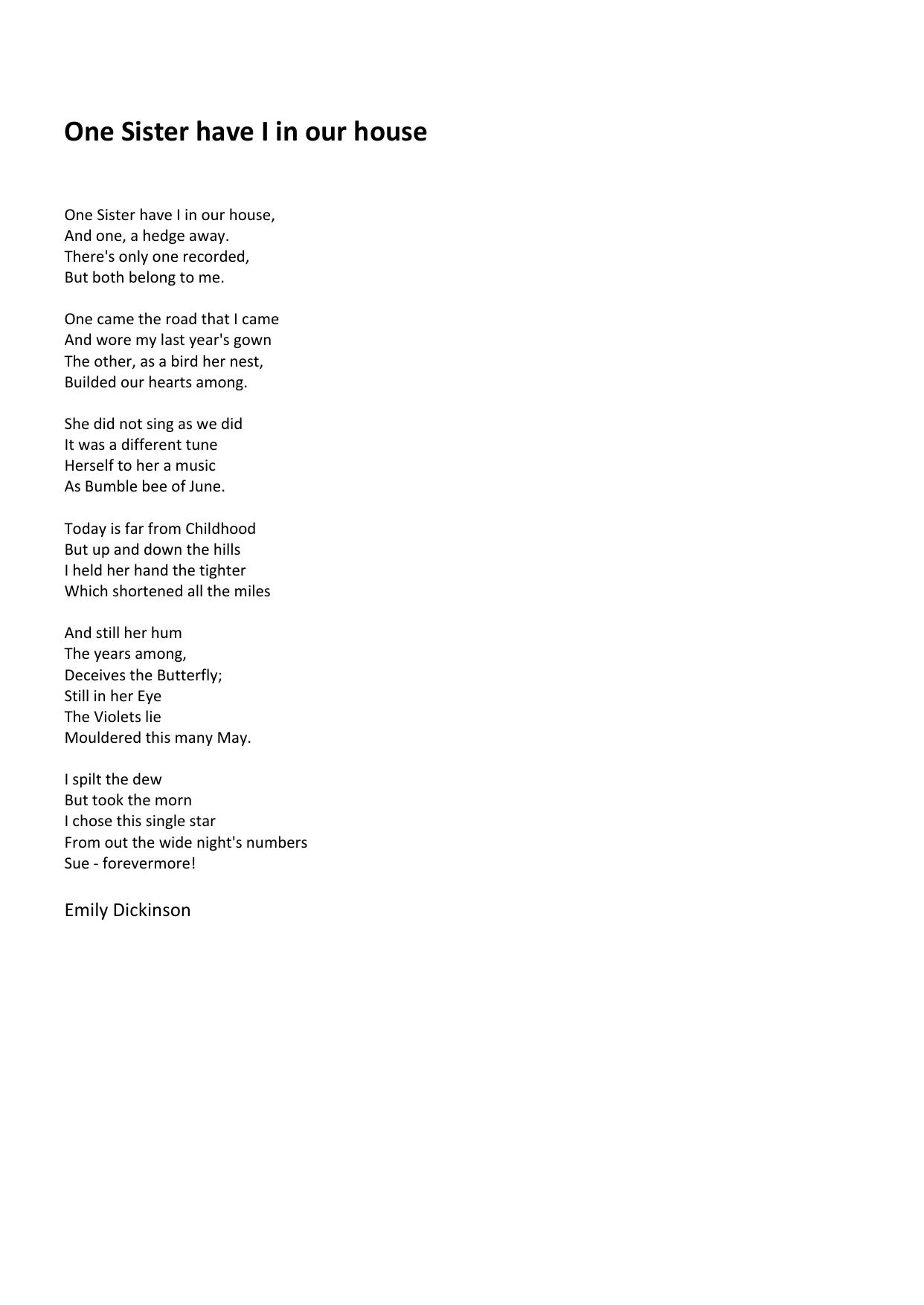 One Sister have I in our house