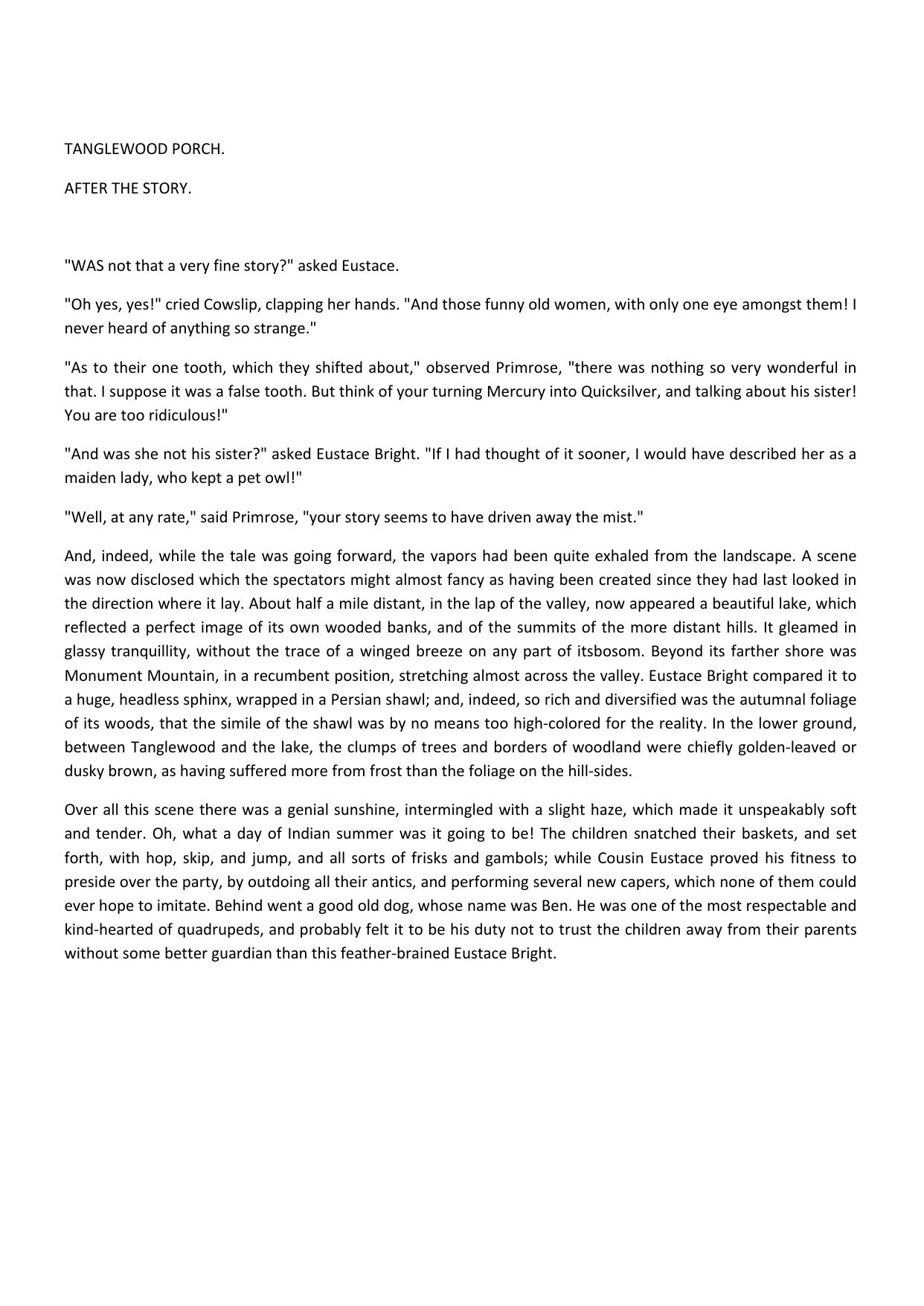 Tanglewood Porch: After the Story