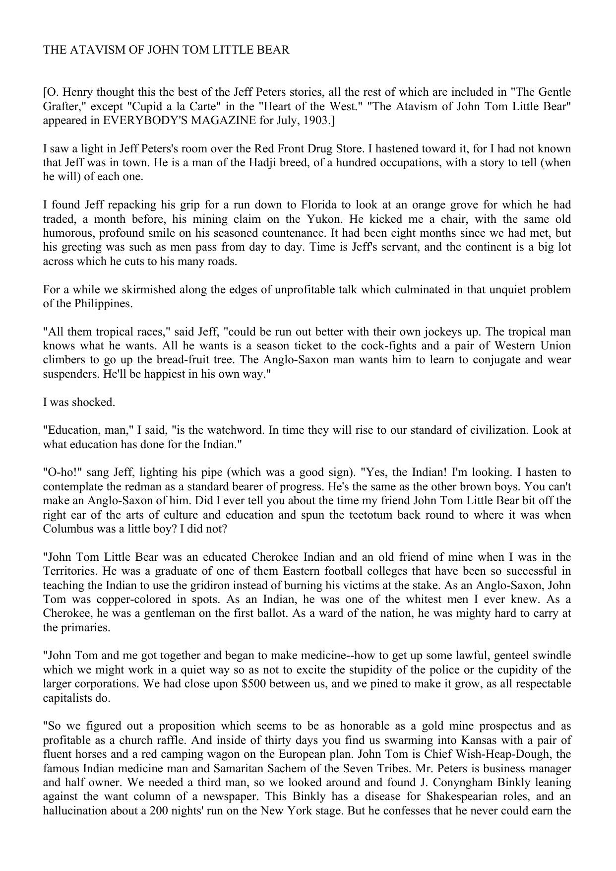 The Atavism of John Tom Little Bear