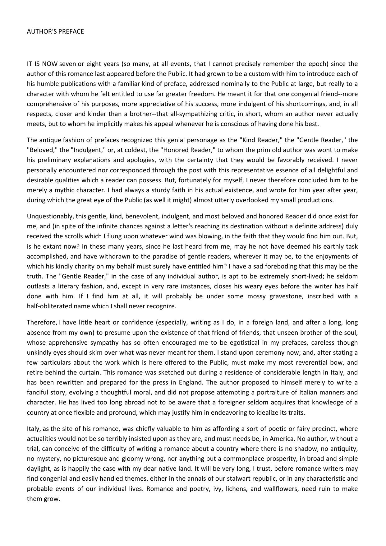 The Marble Faun or, the Romance of Monte Beni preface