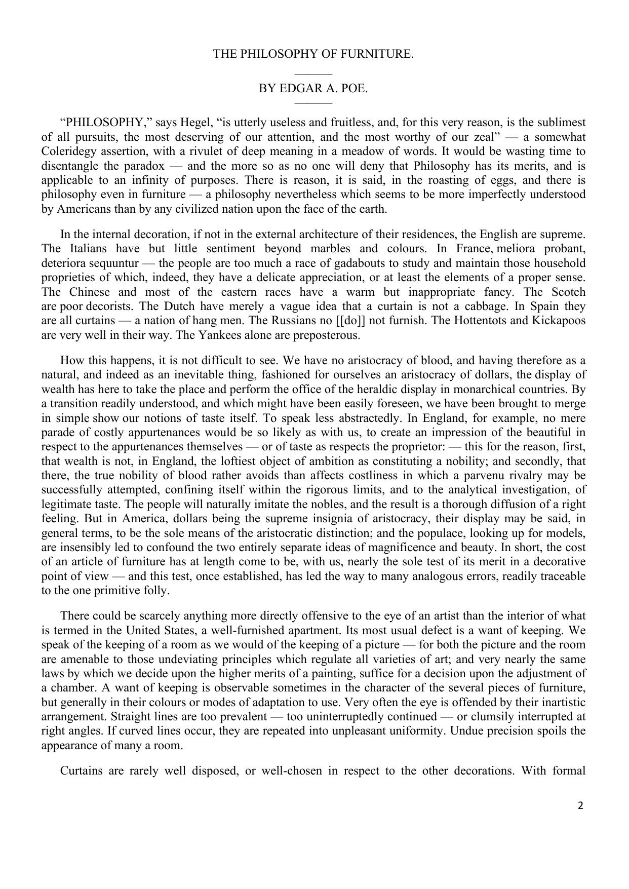 The Philosophy of Furniture