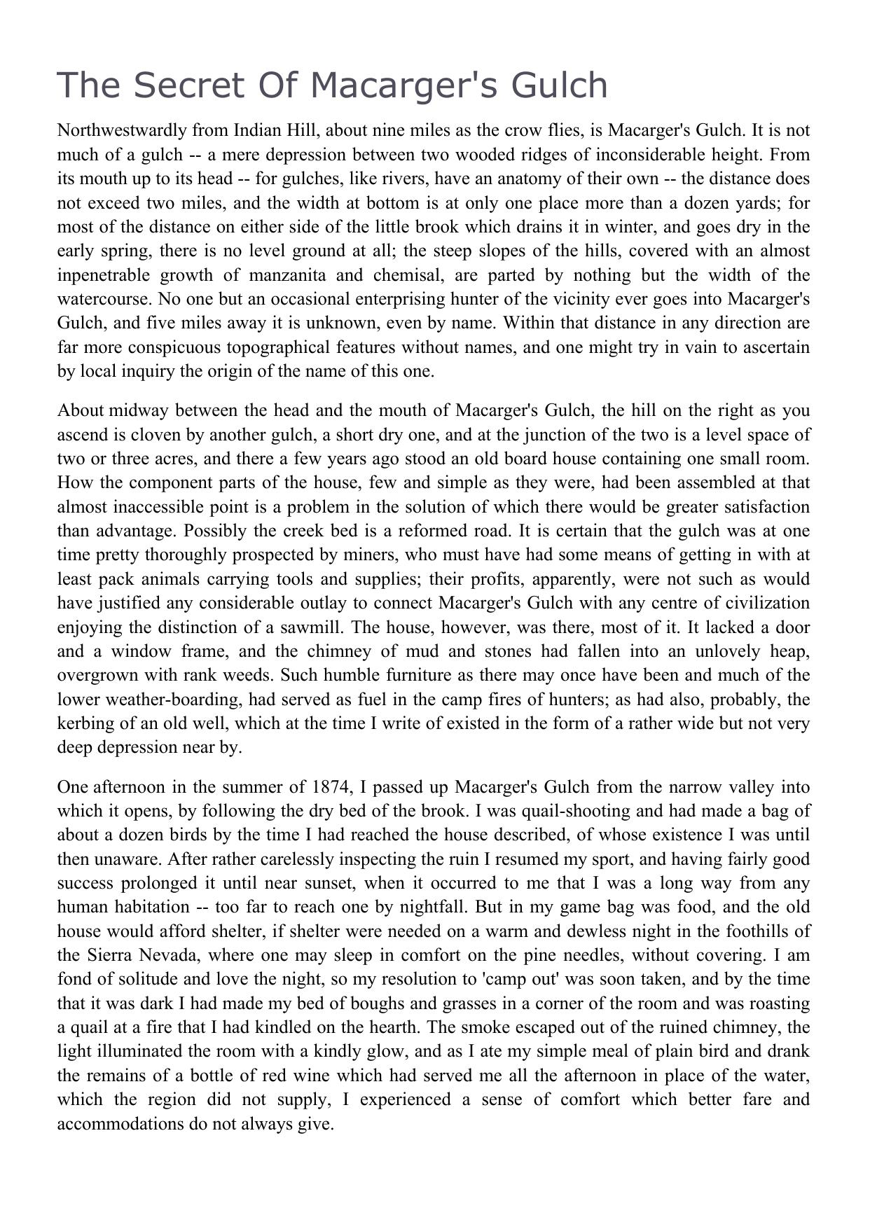 The Secret of Macarger's Gulch