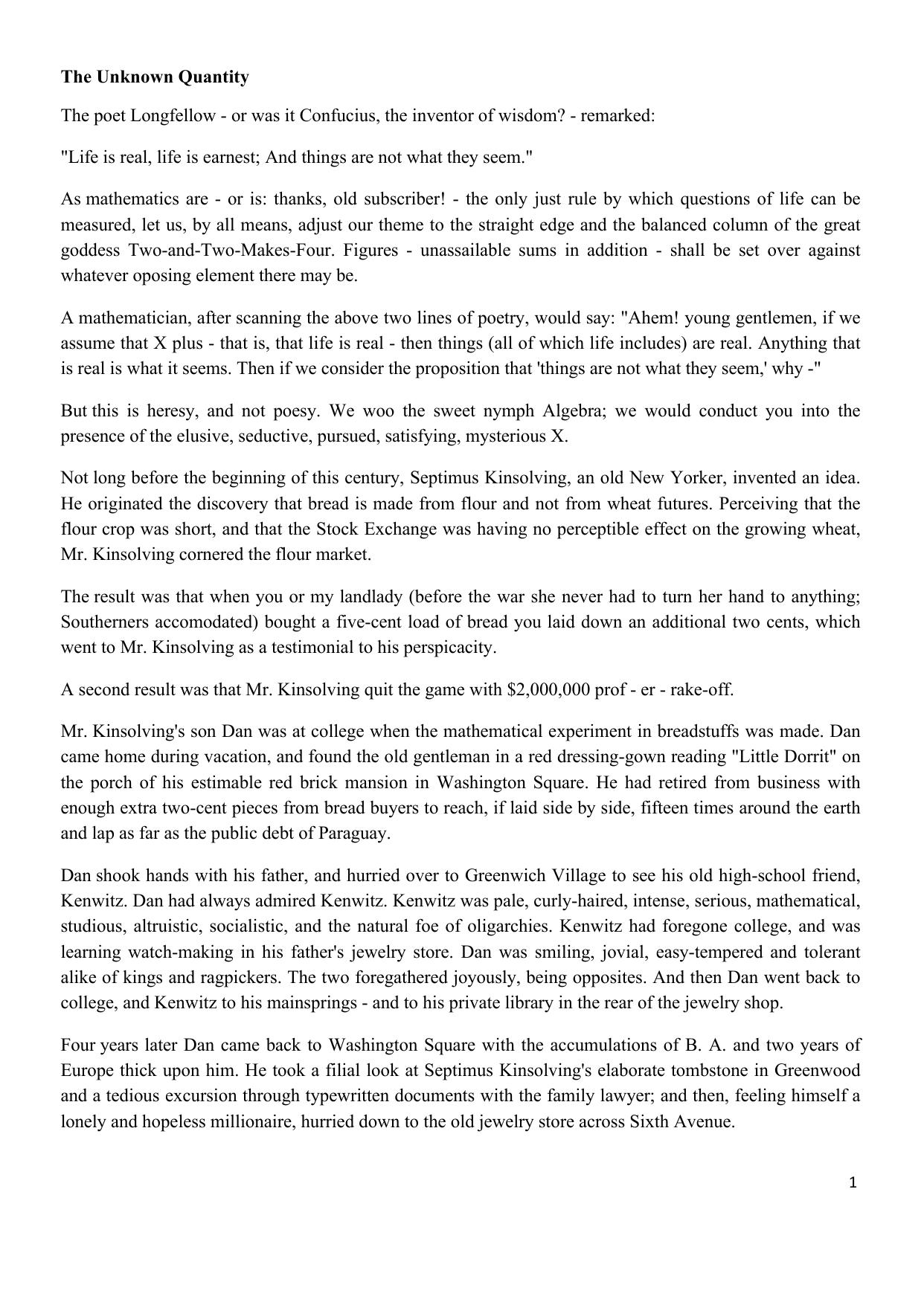 The Unknown Quantity