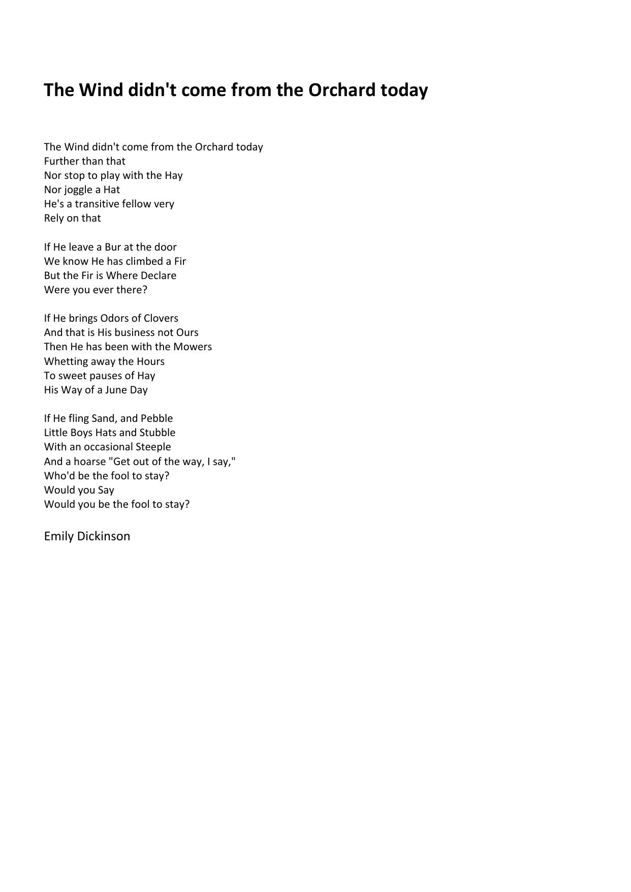 The Wind didn't come from the Orchard — today