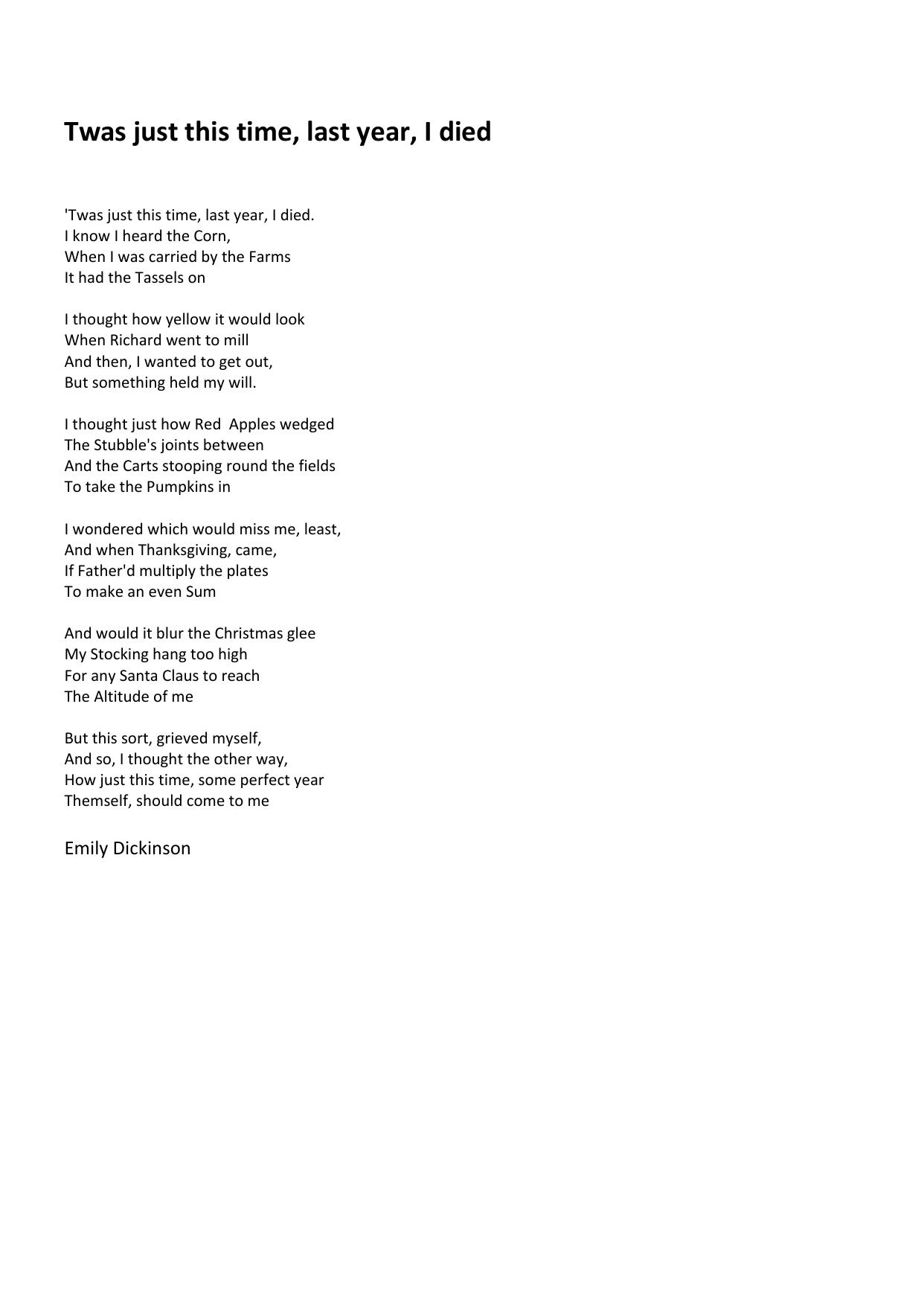 Twas just this time, last year, I died.