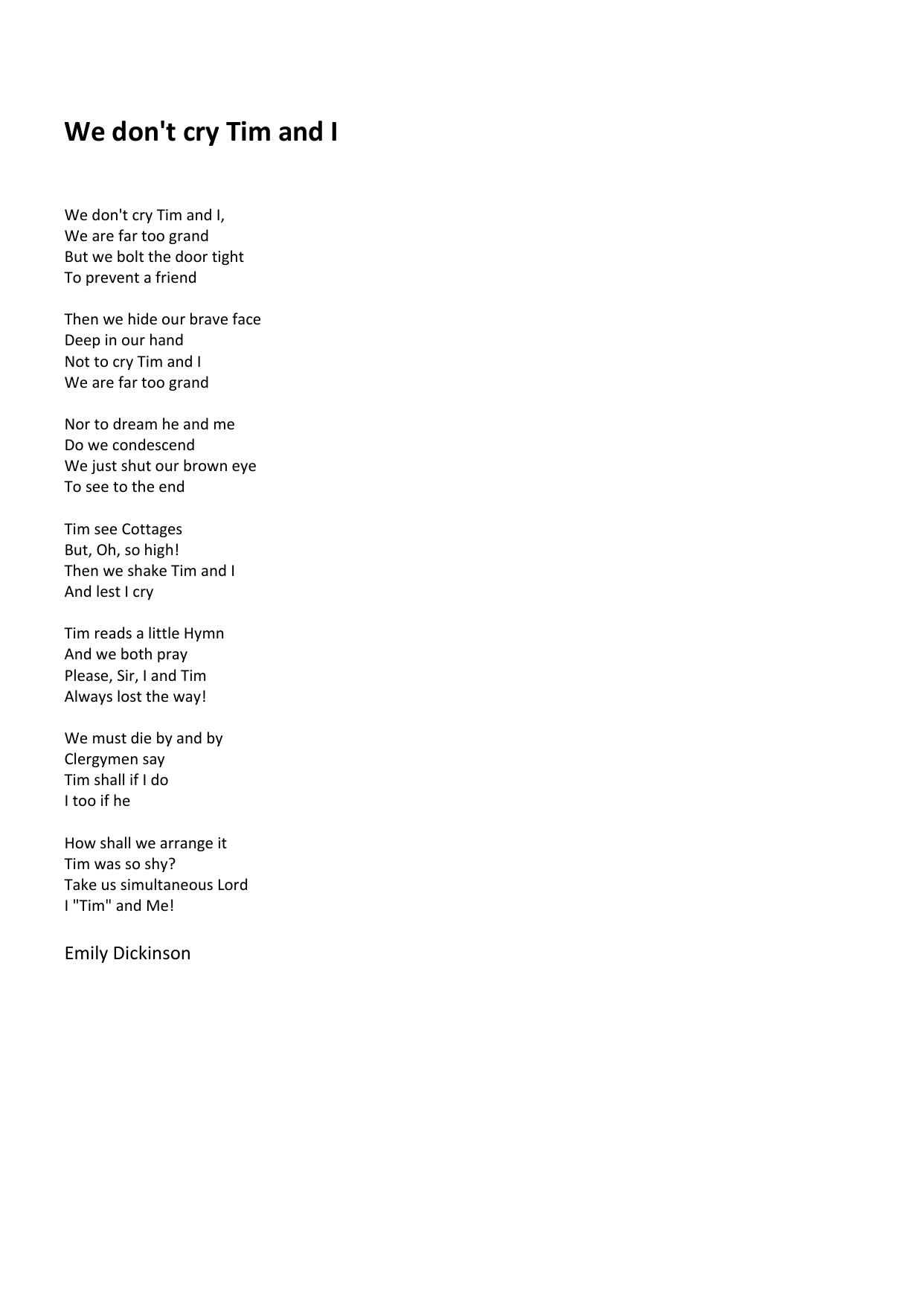 We don't cry — Tim and I