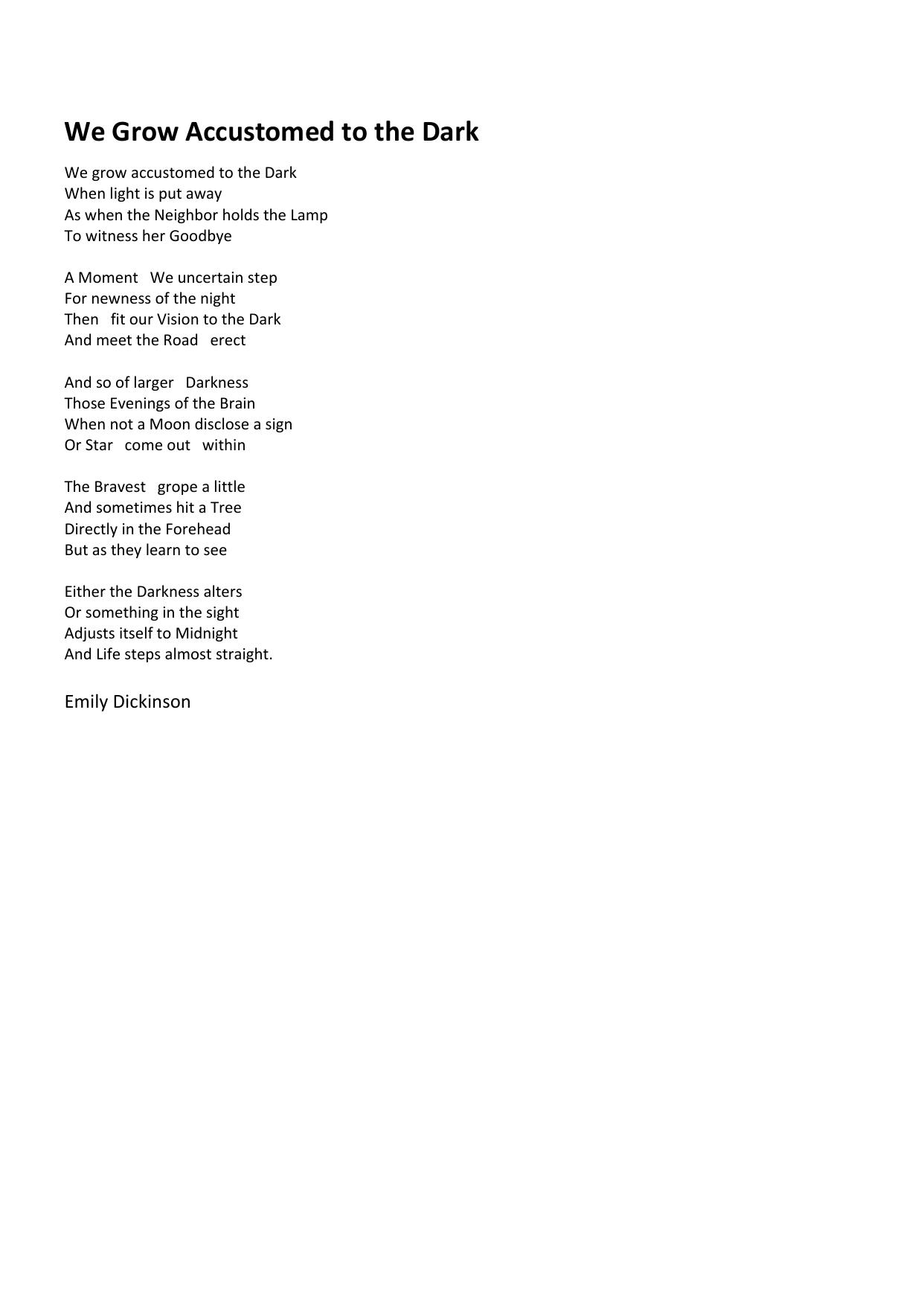 We grow accustomed to the Dark