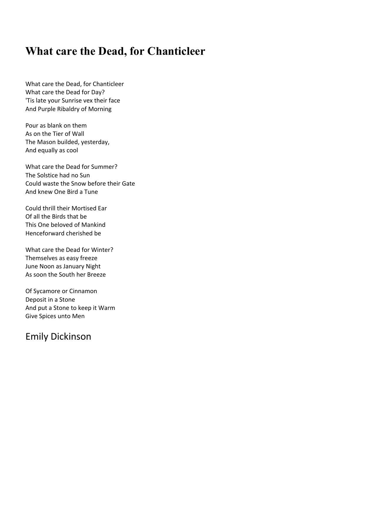 What care the Dead, for Chanticleer